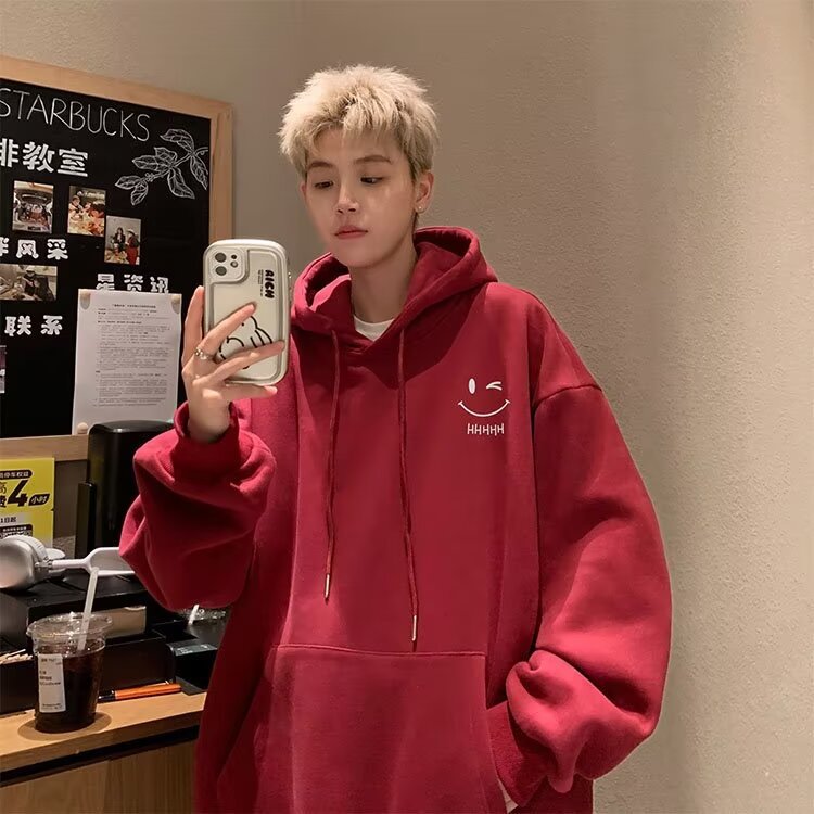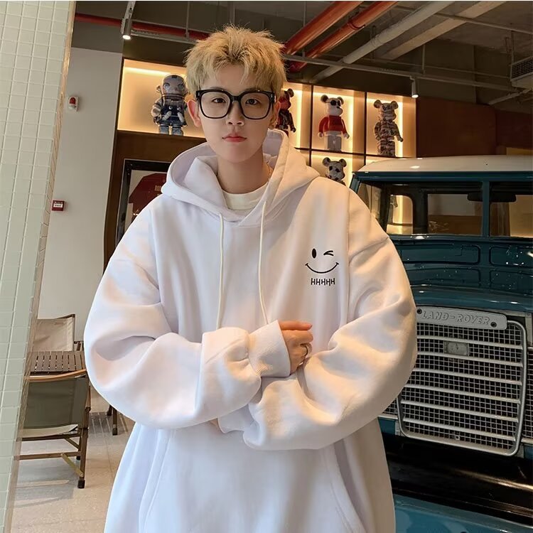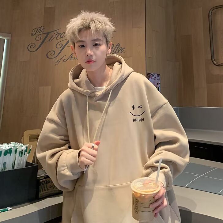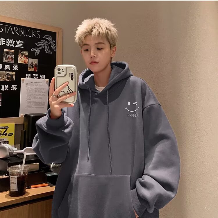 Главная страница > Национальная приливная свободная капюшон с плюшевой капюшоном мужской осенью и зимой 2024 новый американский мальчик прилив тяжелый смайлик толстовка