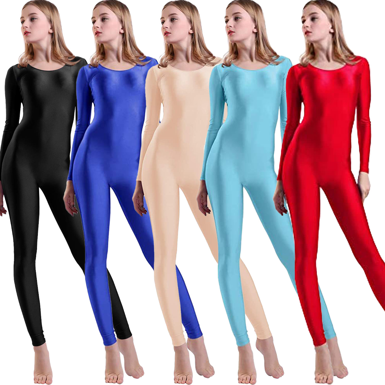 Главная страница > Женский черный комбинезон-леотард из спандекса с длинными рукавами и низким круглым вырезом для танцев и гимнастики