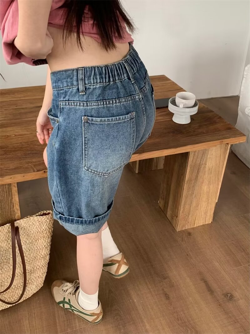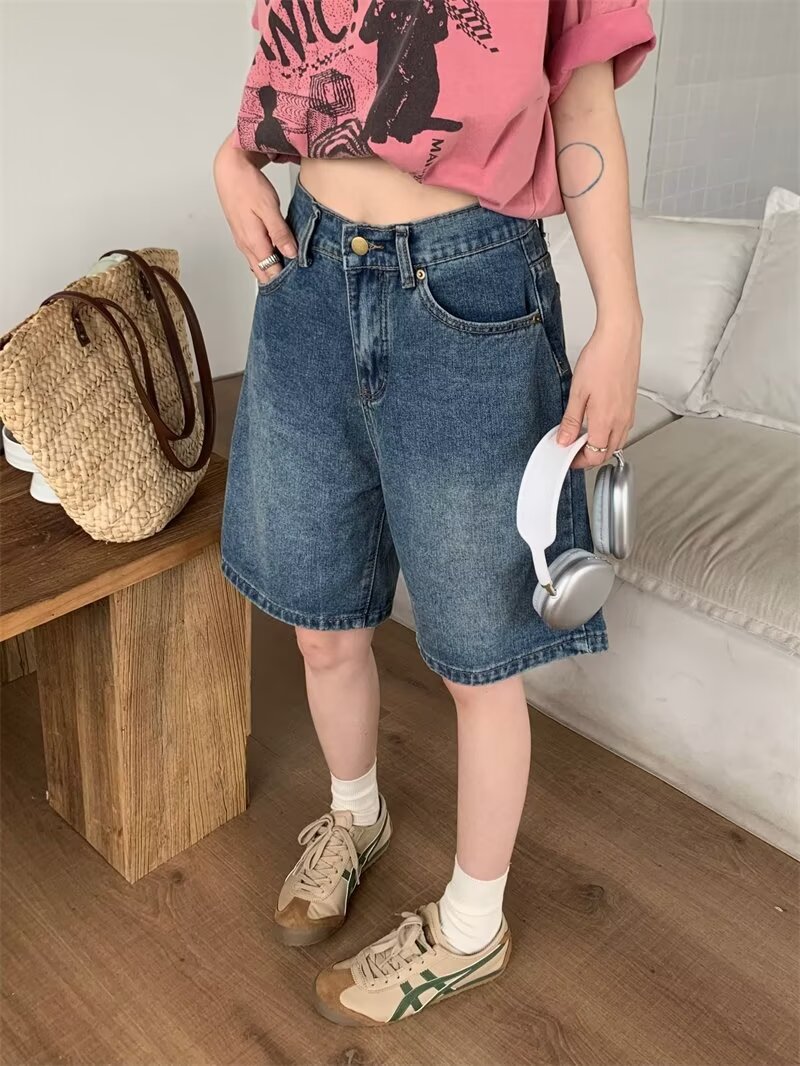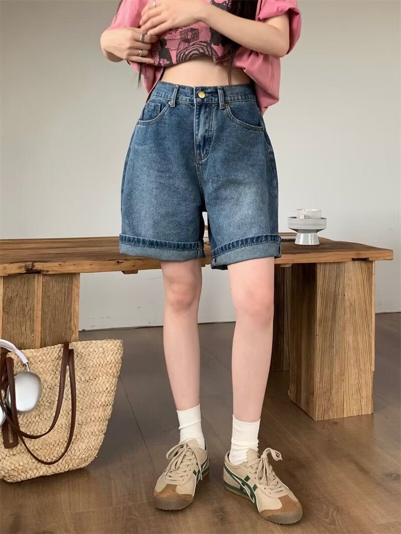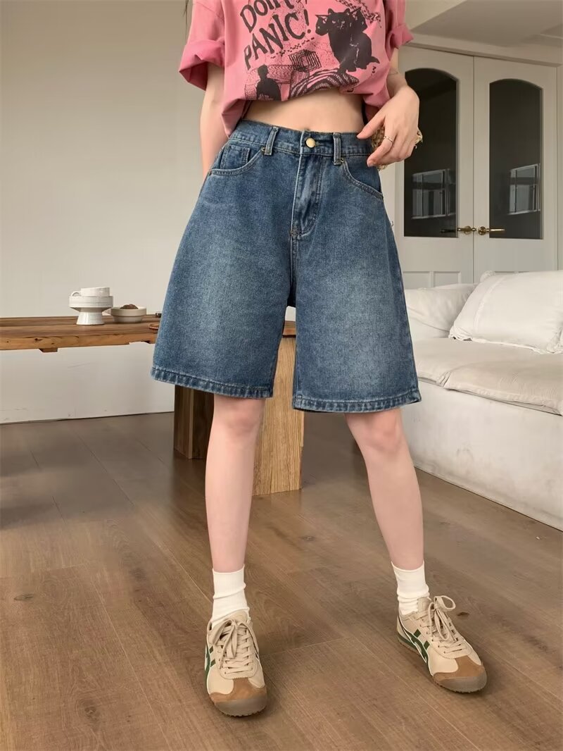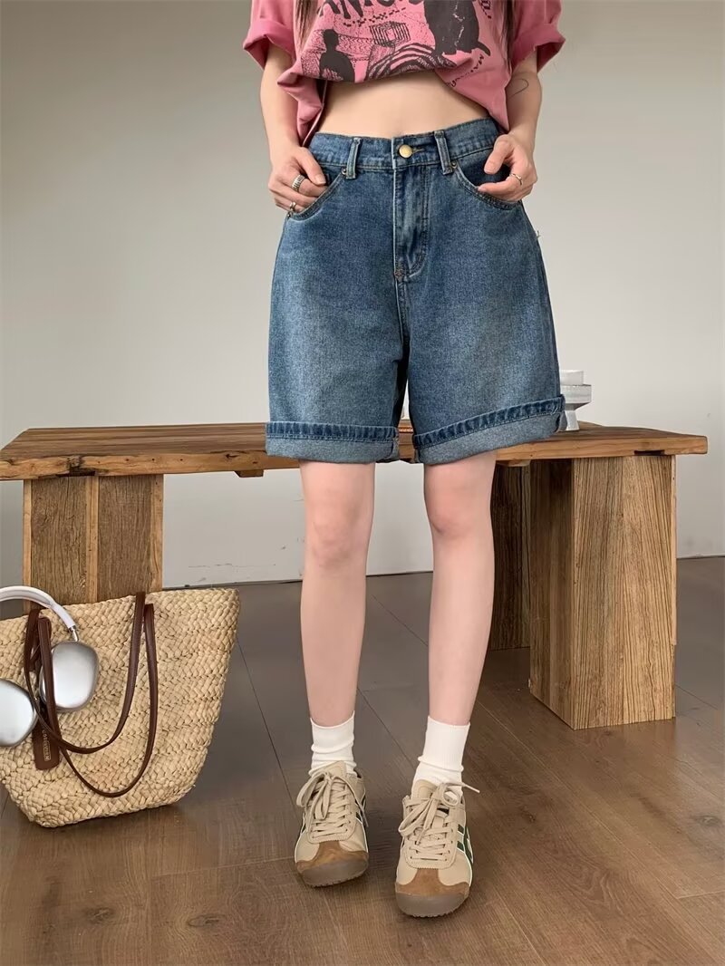 Рубашки меньше одежды ретро джинсовые шорты женские свободные летние 2025 новые прямые брюки с высокой талией