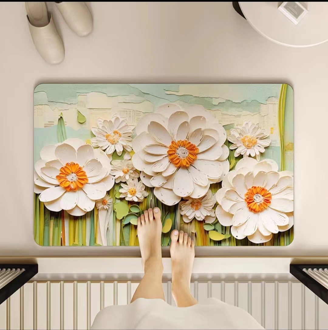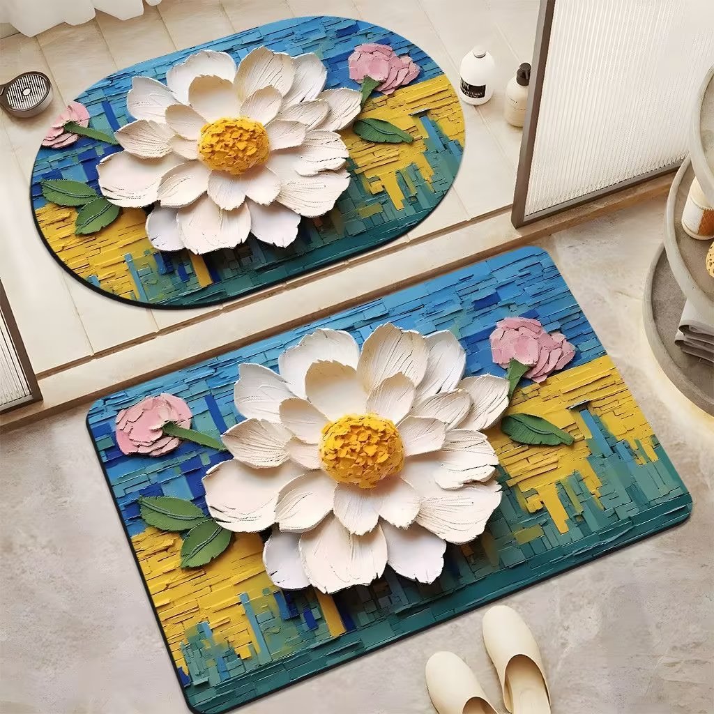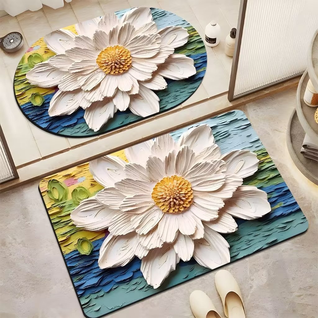 Главная страница > Коврик для ванной из диатомитовой земли 3D «Маргаритка», мультяшный, с эффектом масляной живописи, быстросохнущий, влаговпитывающий, с изображением лотоса, тренд TikTok
