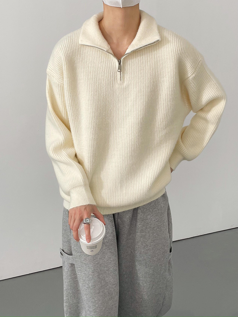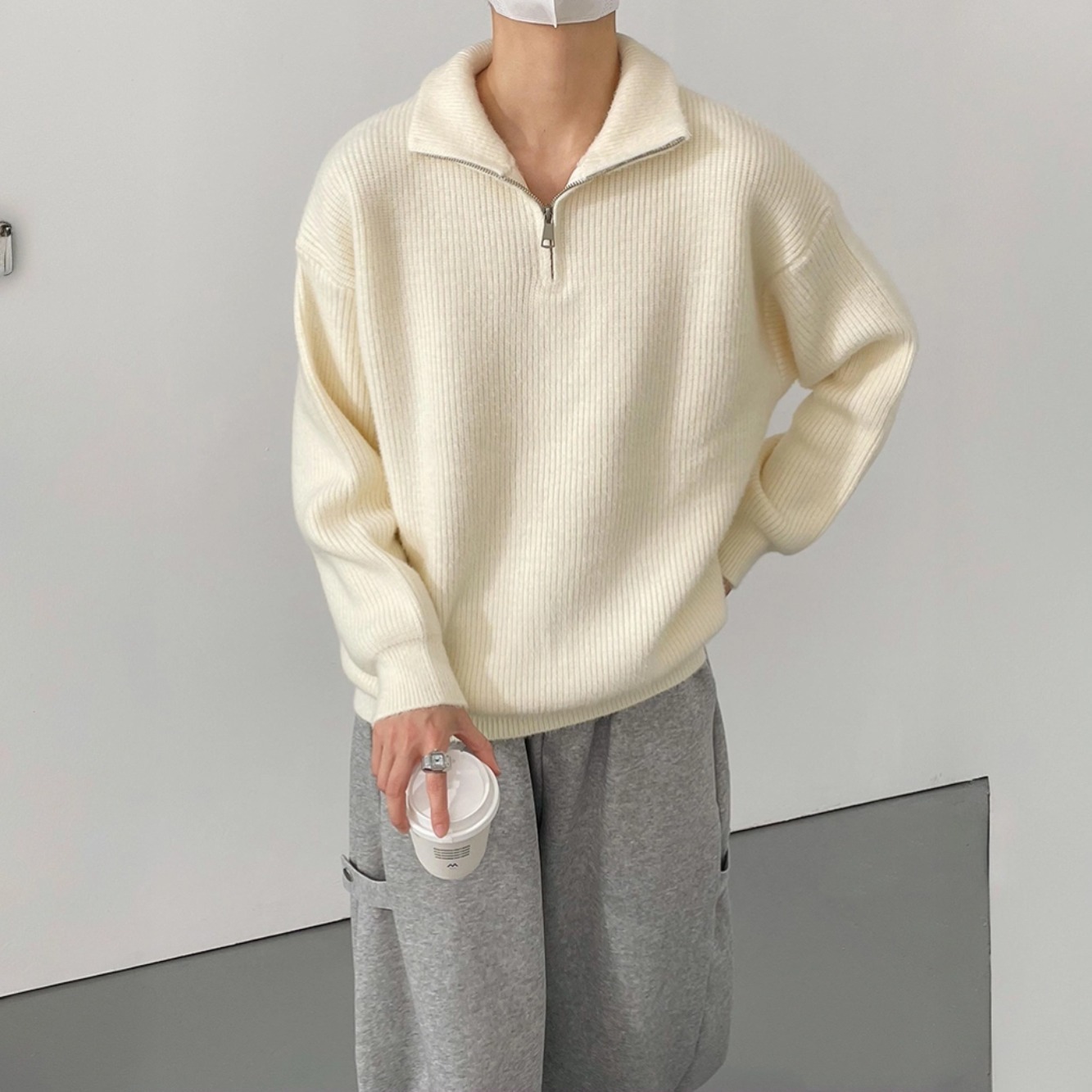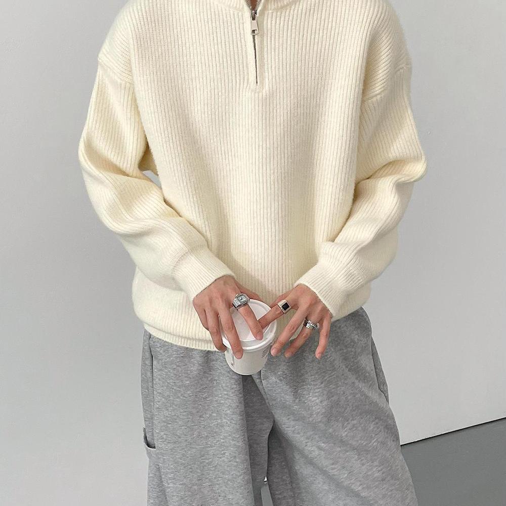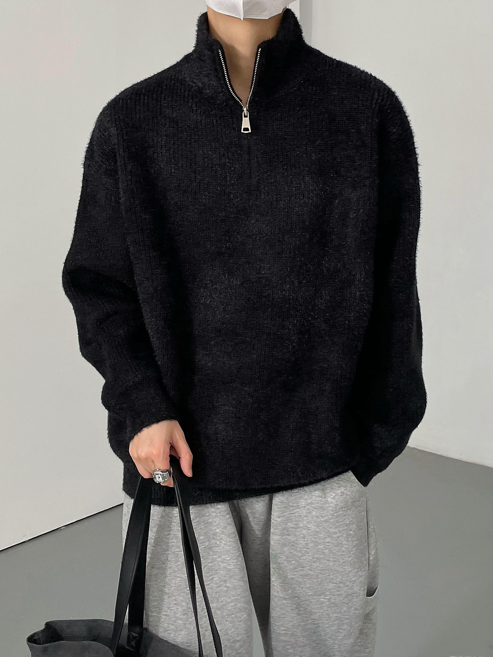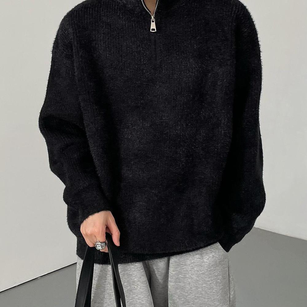 Главная страница > Осенняя и зимняя корейская версия модной 2024 имитация норки с половиной молнии свитер с высоким воротником мужской свободный толстый свитер прилив