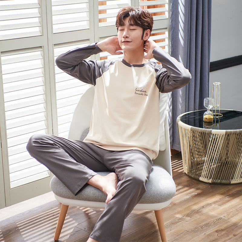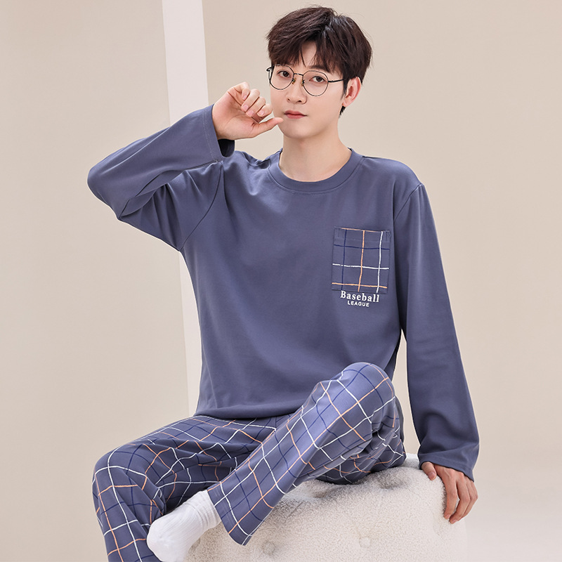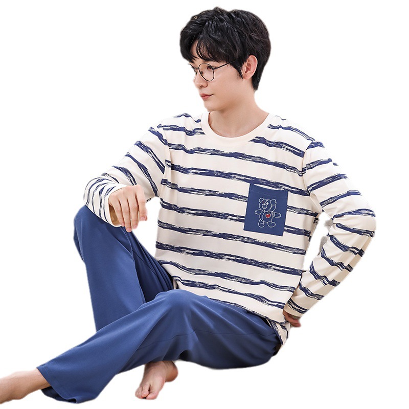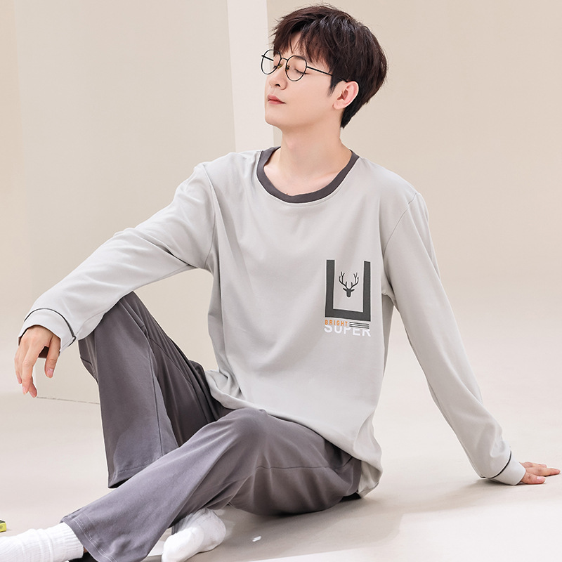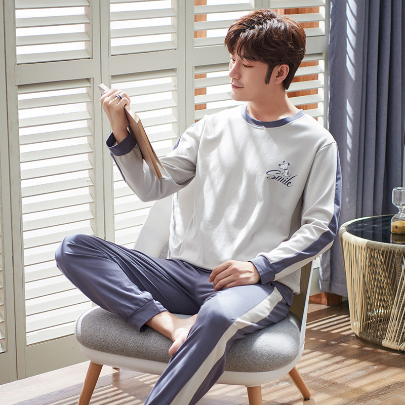Главная страница > Пижама из чистого хлопка, мужские осенние брюки с длинными рукавами, пуловер, свободная повседневная верхняя одежда в Корейском стиле для студентов, домашняя одежда, костюм