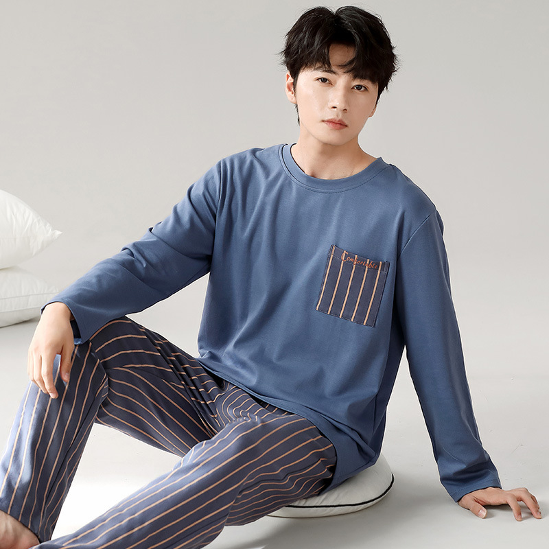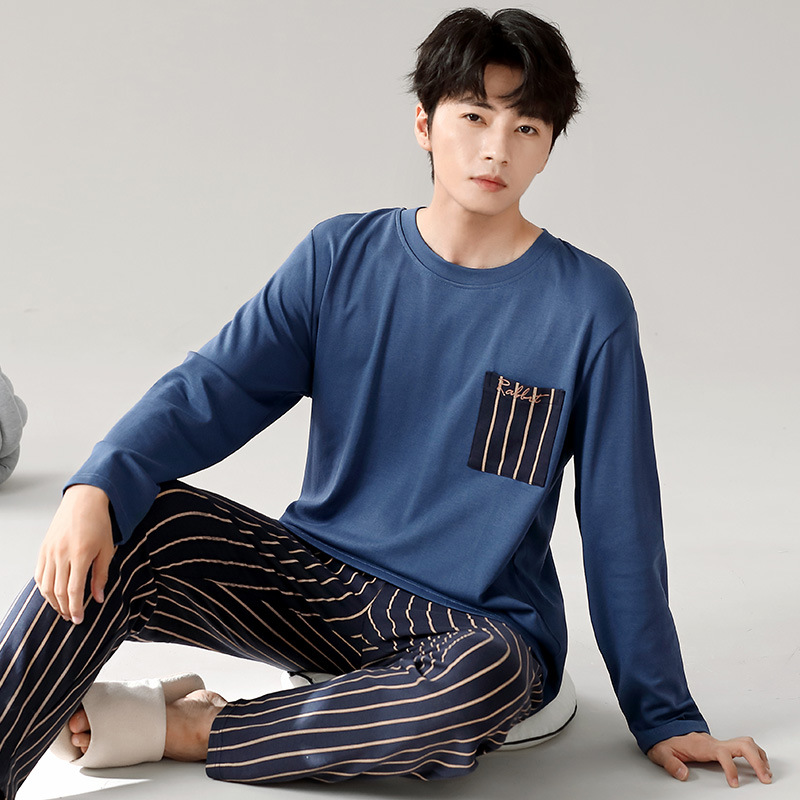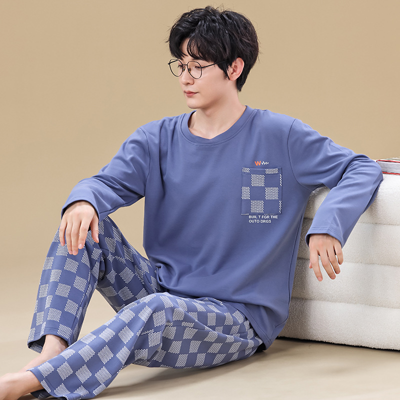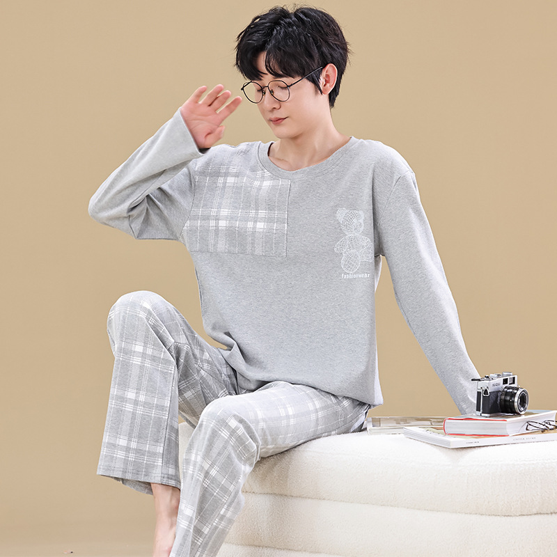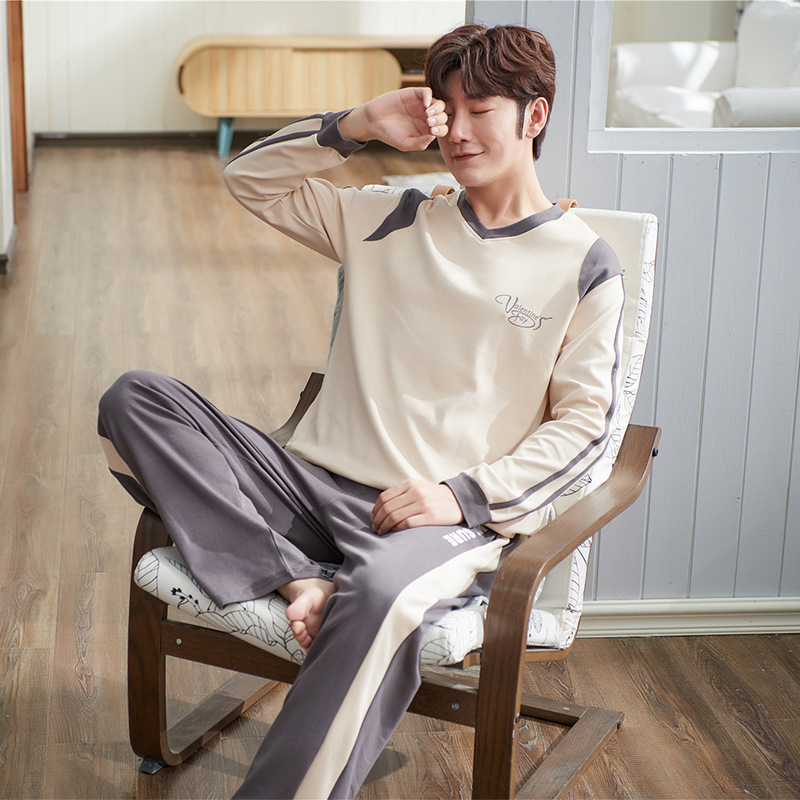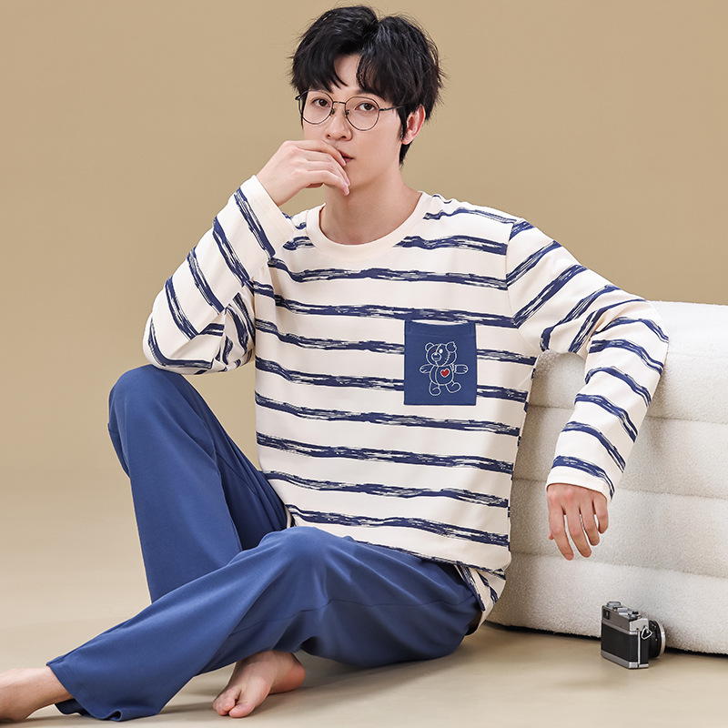 Главная страница > Пижама из чистого хлопка, мужские осенние брюки с длинными рукавами, пуловер, свободная повседневная верхняя одежда в Корейском стиле для студентов, домашняя одежда, костюм