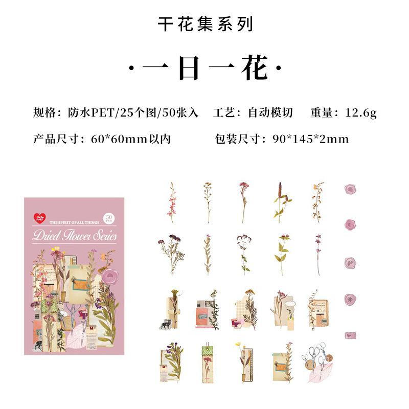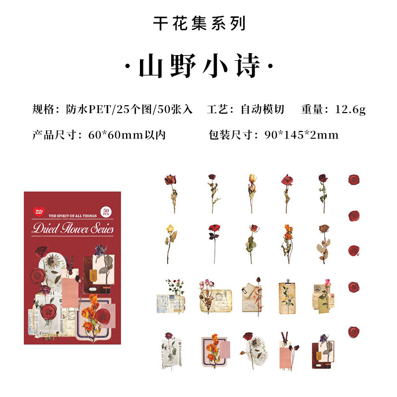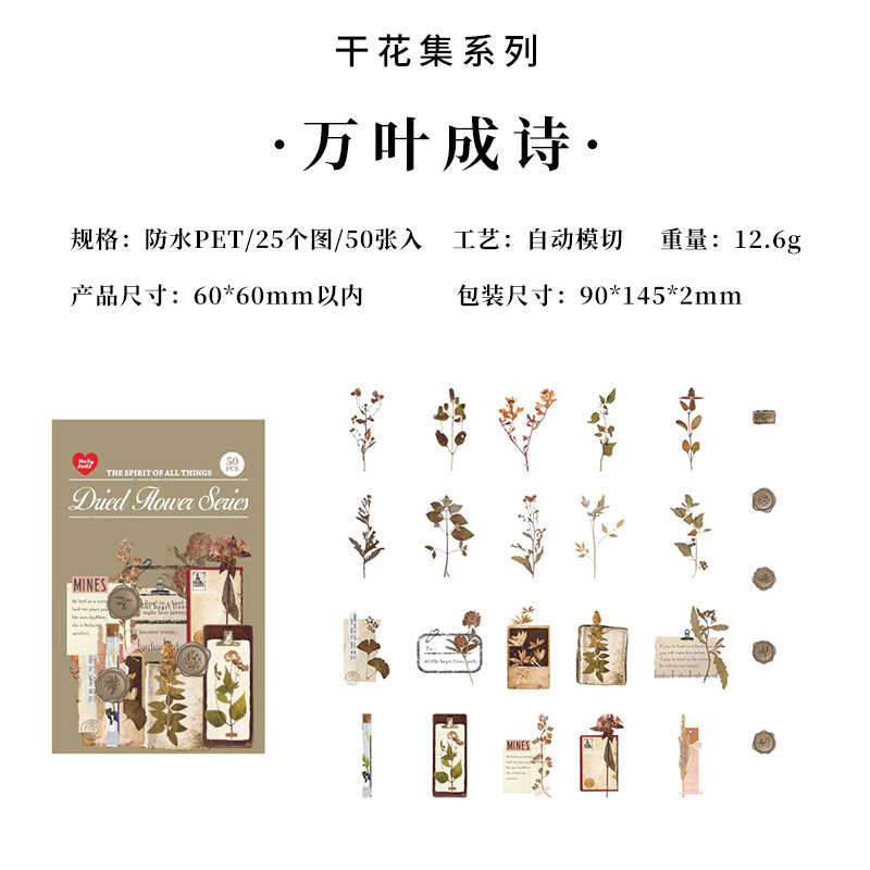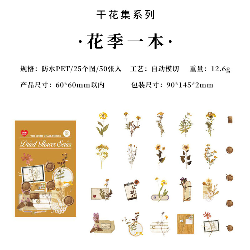 Главная страница > Dream Dance Сухая коллекция цветов серии PET стикер пакет 50 ретро креативный ручной дневник DIY стикер 6 моделей