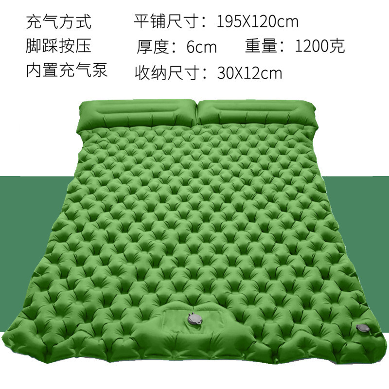 Автомобильная зеленая двойная утолщенная и расширенная надувная подушка с ножным насосом