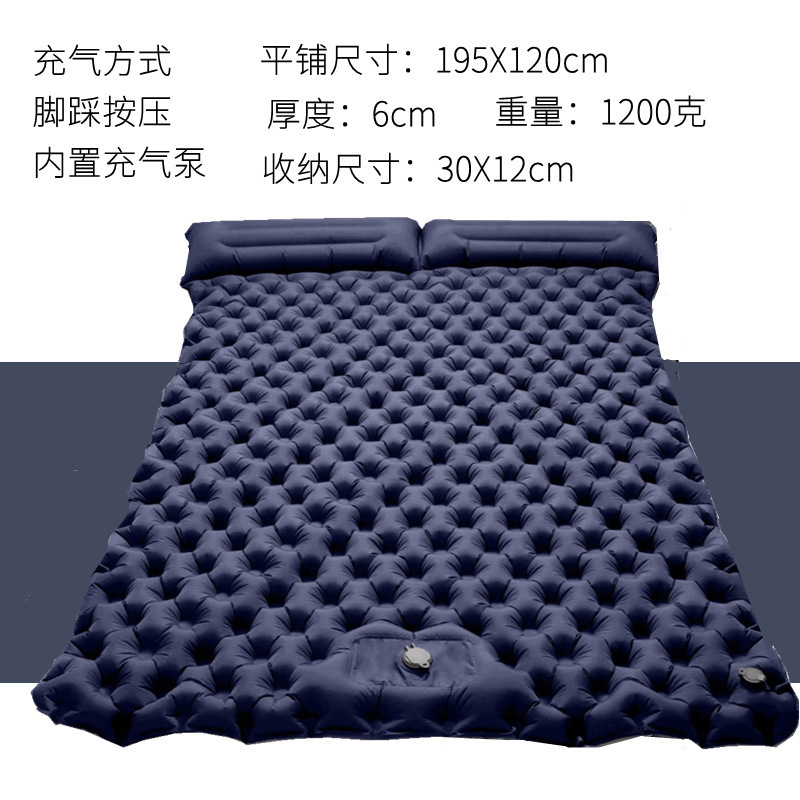 Синяя двойная утолщенная и расширенная надувная подушка с ножным насосом