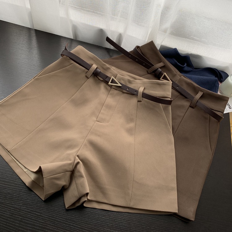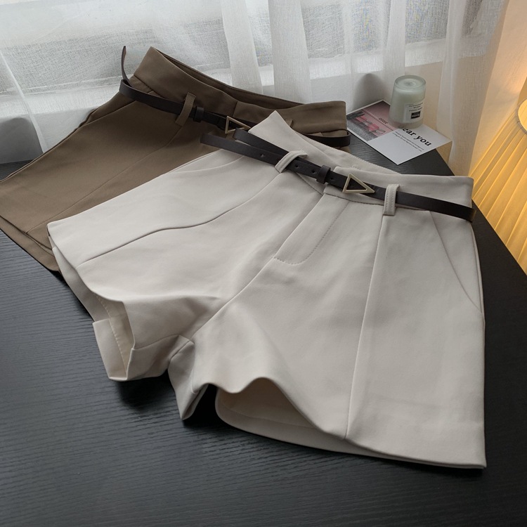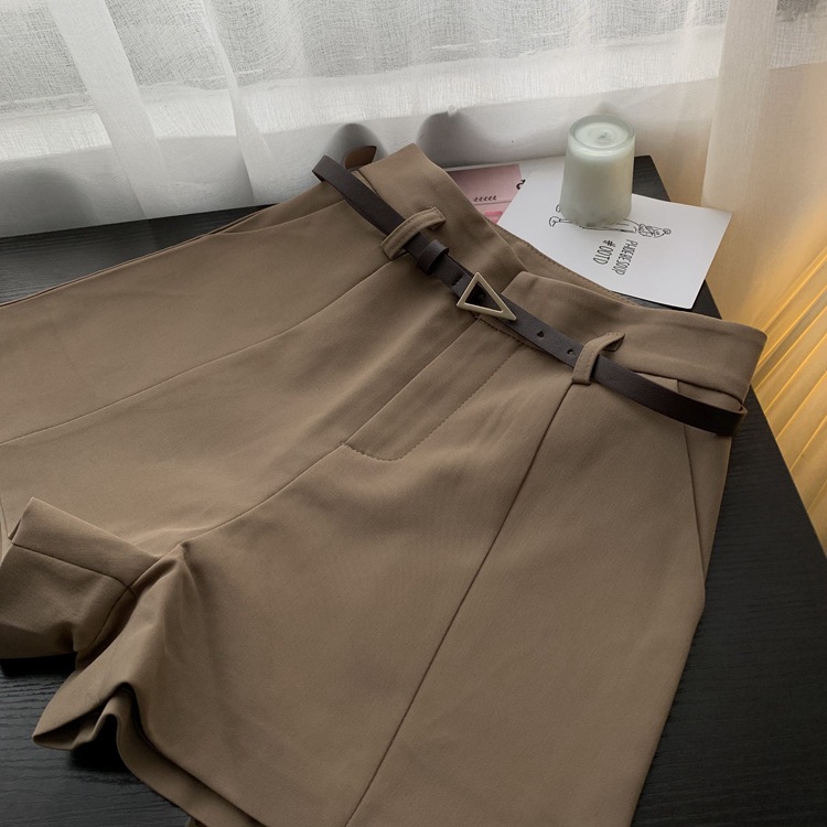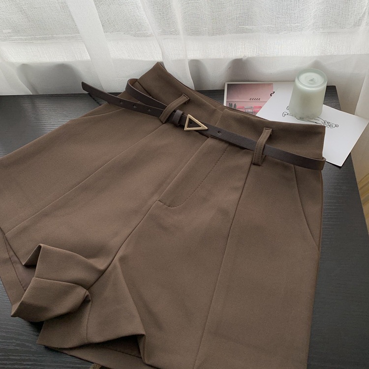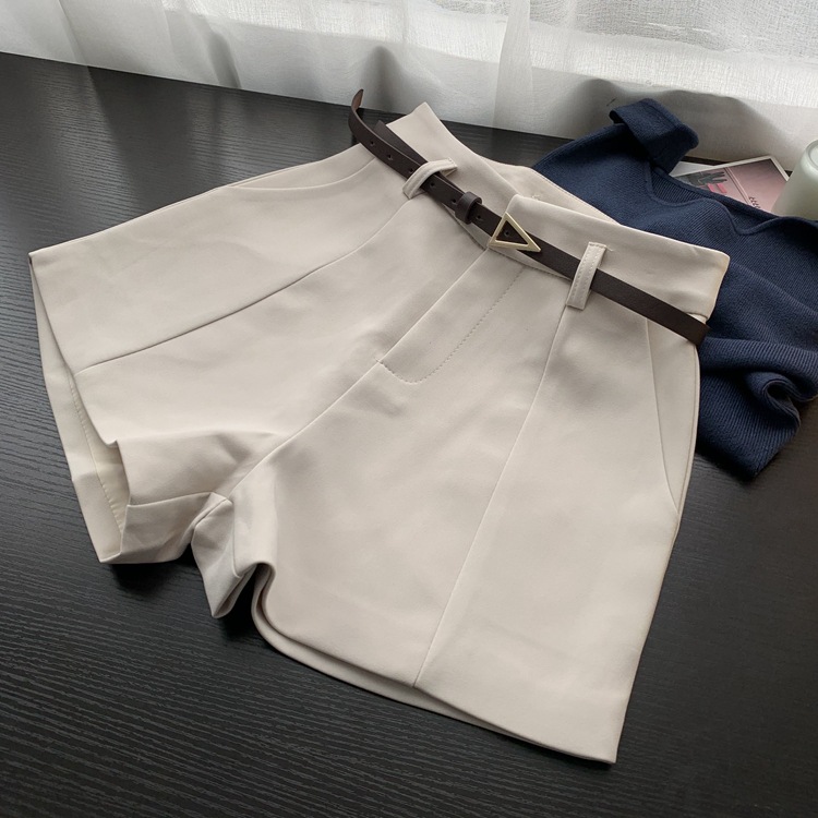 Главная страница > Повседневный костюм-шорты Женская весенняя одежда 2023 в Корейском стиле Модные универсальные брюки с высокой талией для похудения А-силуэтом с широкими штанинами Модные с поясом