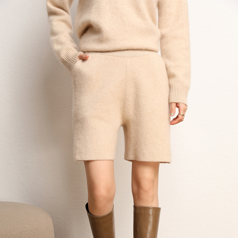 Главная страница > Кашемир 2023 осень-зима новые женские утолщенные шорты с кунжутным узором, модные сапоги, брюки, короткие брюки с высокой талией