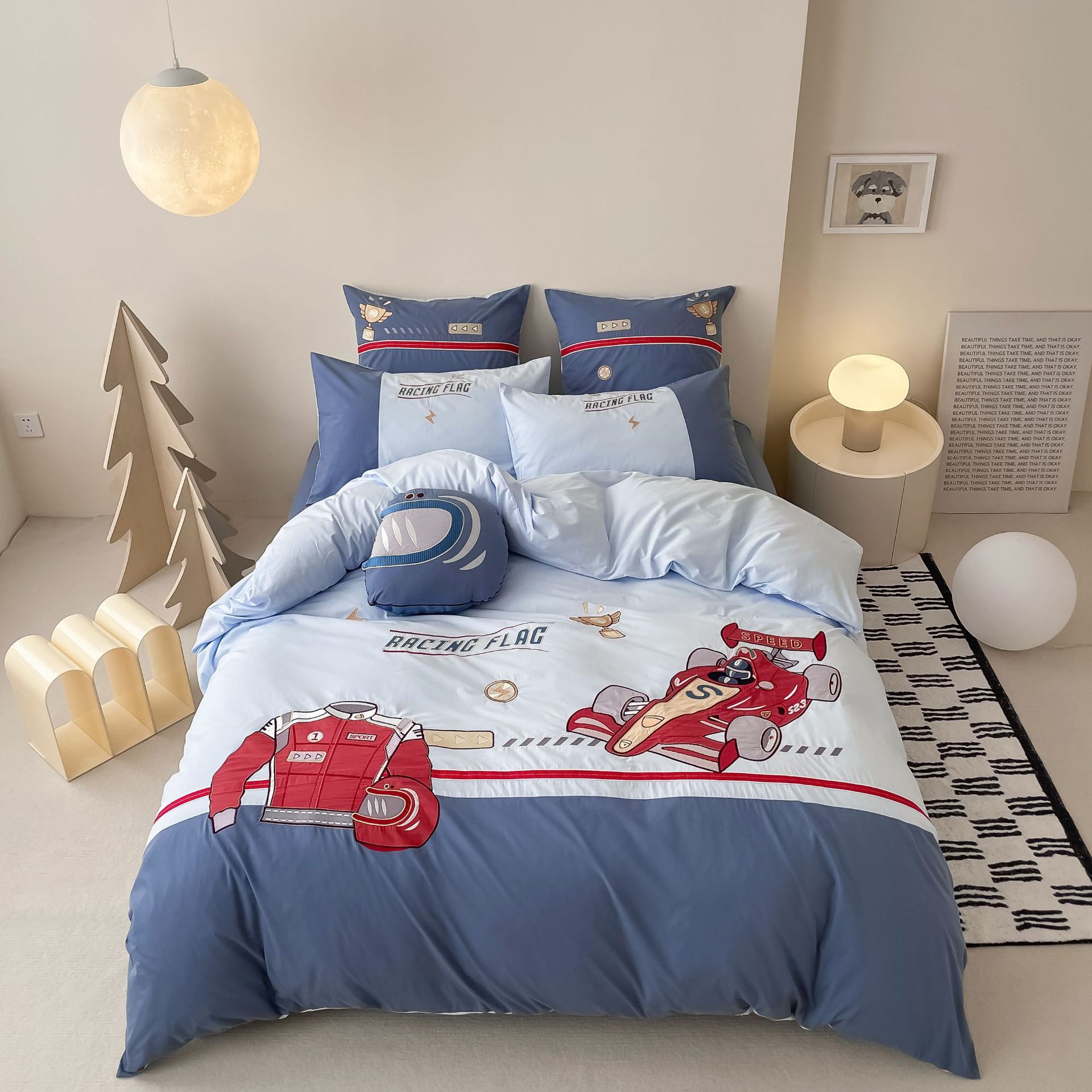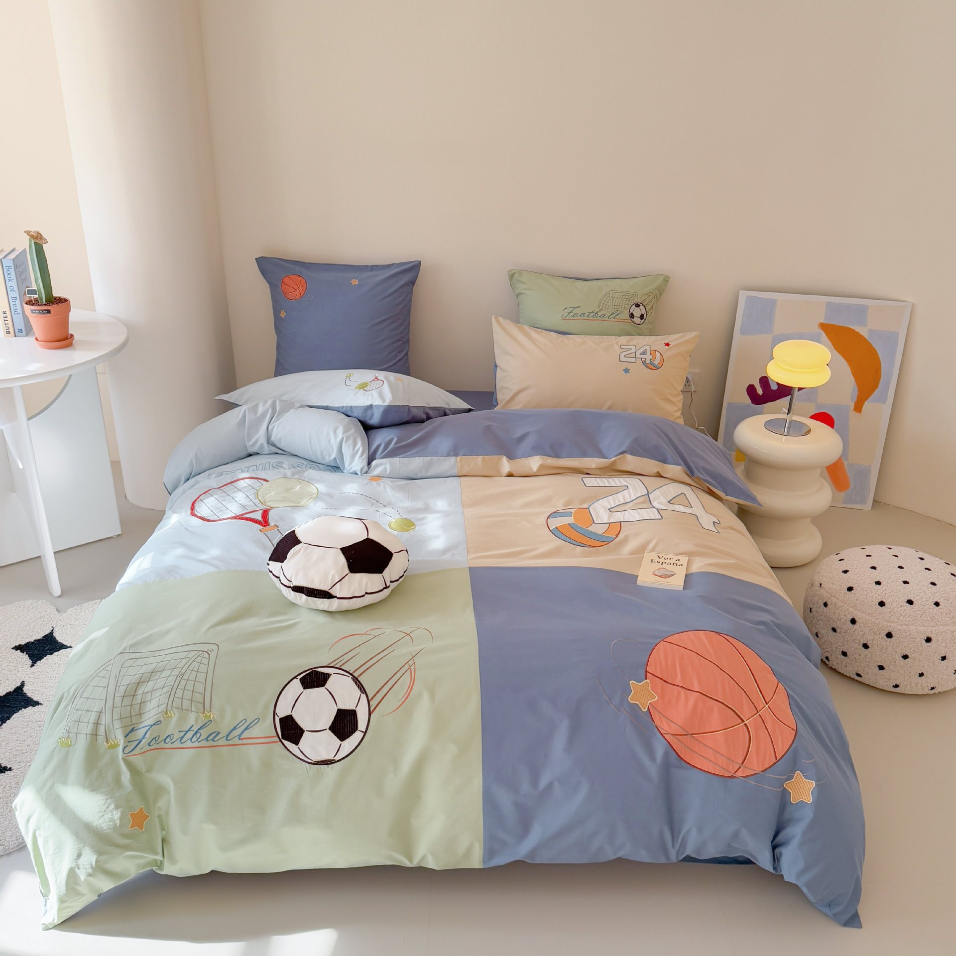 Главная страница > Спортивный стиль для мальчиков, чистый хлопок, стиранный хлопок, комплект из четырех предметов для подростков и детей, пододеяльник, простыни, постельное белье из чистого хлопка с героями мультфильмов
