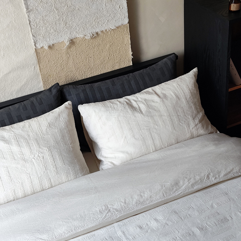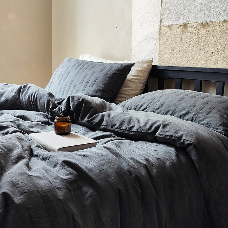 Главная страница > Черный серый жаккардовый комплект из четырех предметов Простыня из выстиранного хлопка пододеяльник в скандинавском стиле осенне-зимнее постельное белье из домашнего текстиля Наньтун