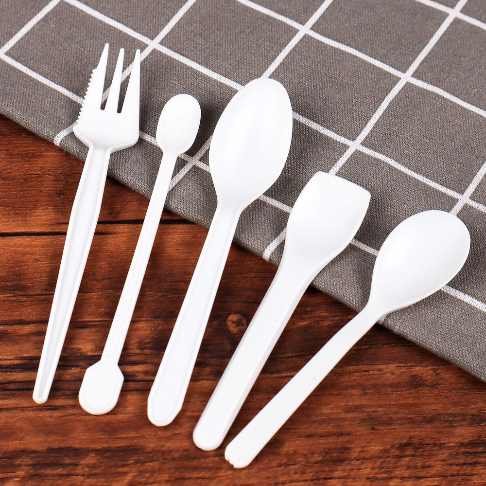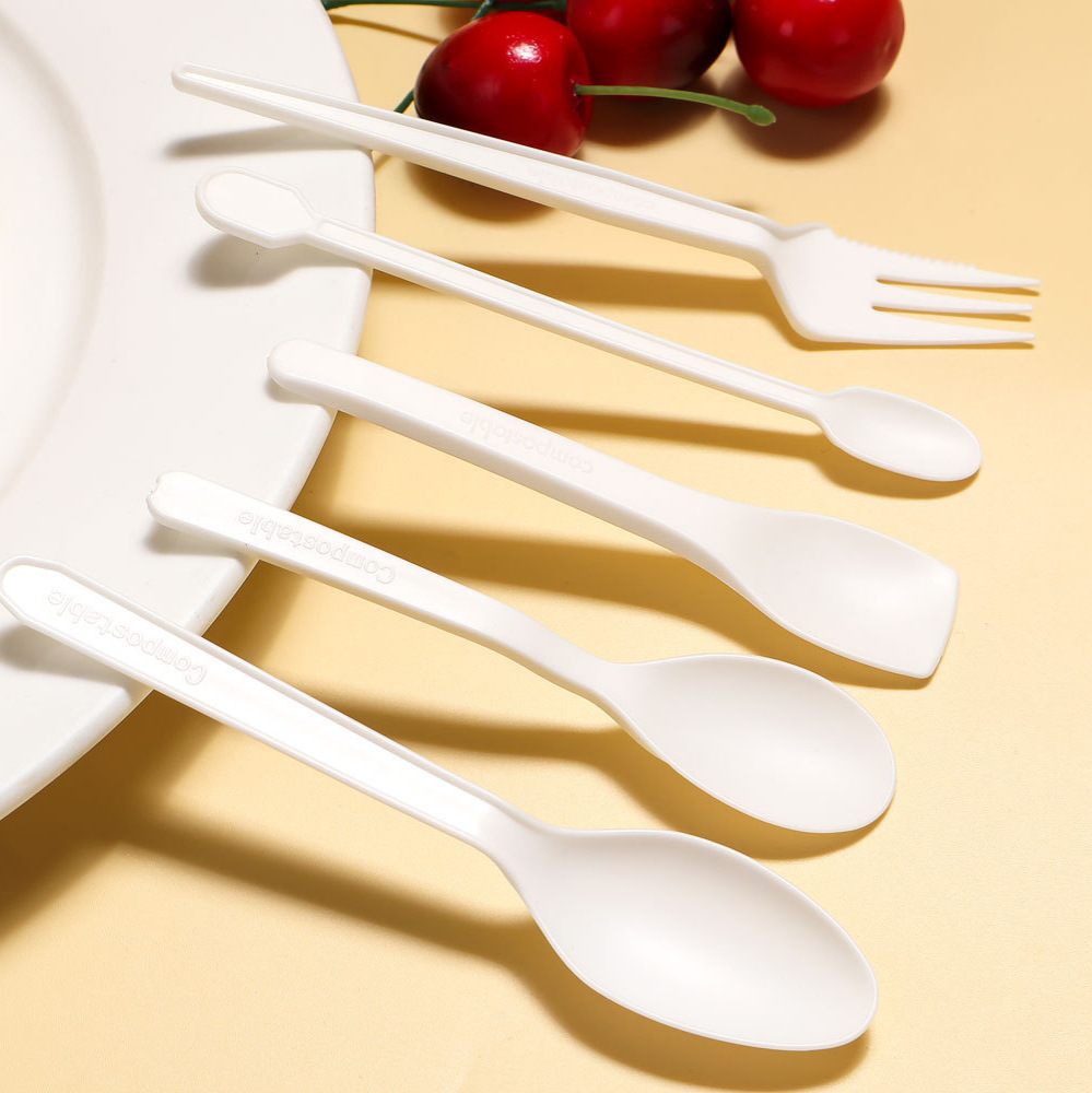 В наличии, в индивидуальной упаковке, одноразовые ложки для мороженого из PLA, ложки для йогурта, десертные ложки, полностью разлагаемая посуда из полимолочной кислоты, экологически чистая.