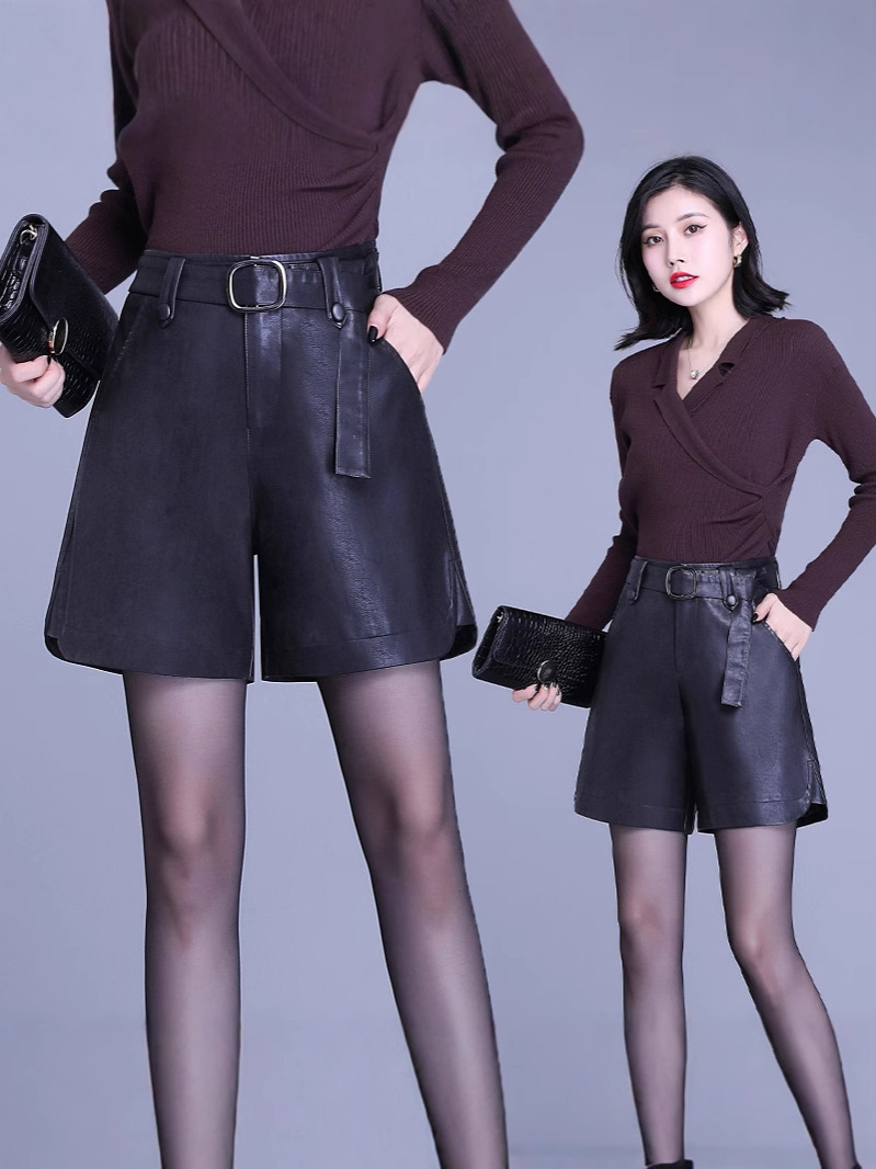 Главная страница > Haining кожаные брюки женские шорты весна и осень 2025 новый стиль с высокой талией и широкими ногами новый универсальный сапоги и брюки