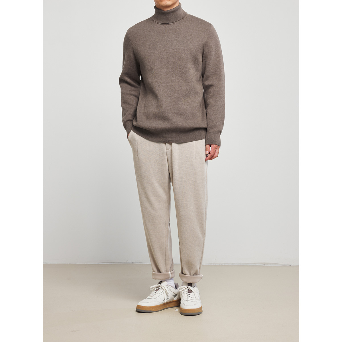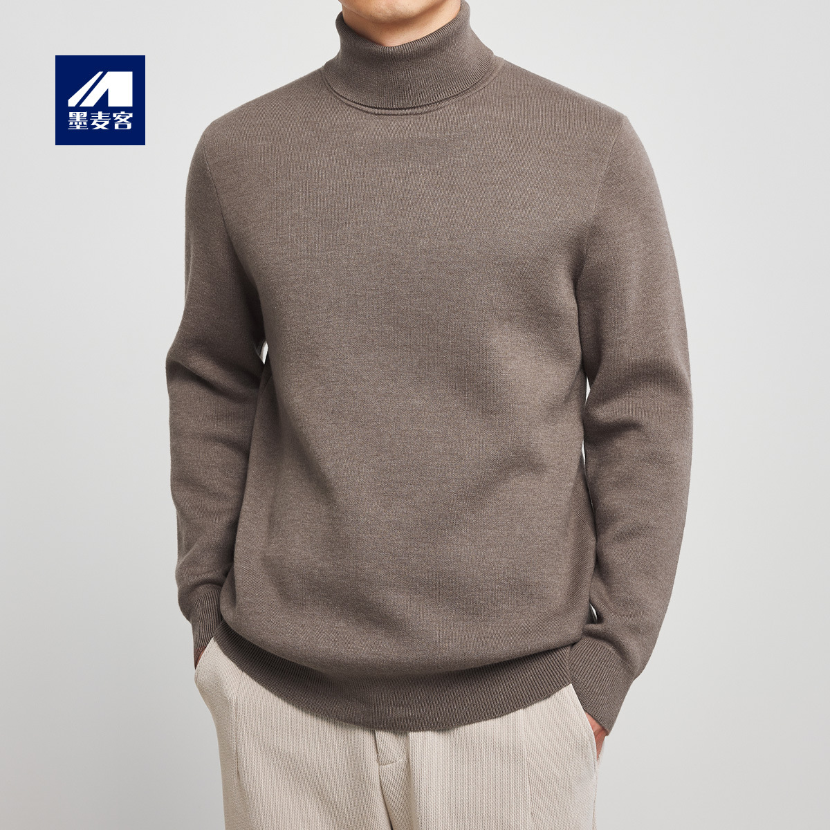 Mo Make Мужская сплошной цвет с плюшевым водолазом свитер мужской 2024 зима новый минималистский мужской вязаный свитер 20213