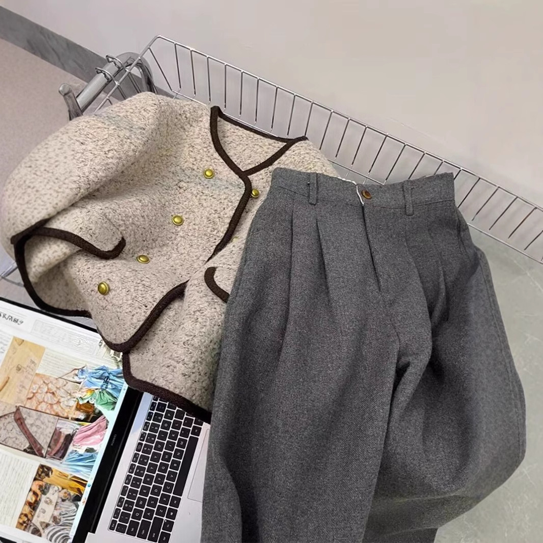 Главная страница > Рекомендуется на уровне CHAO! Темно-серые кашемировые широкие брюки женские осенние и зимние толстые талии свободные шерстяные повседневные длинные брюки