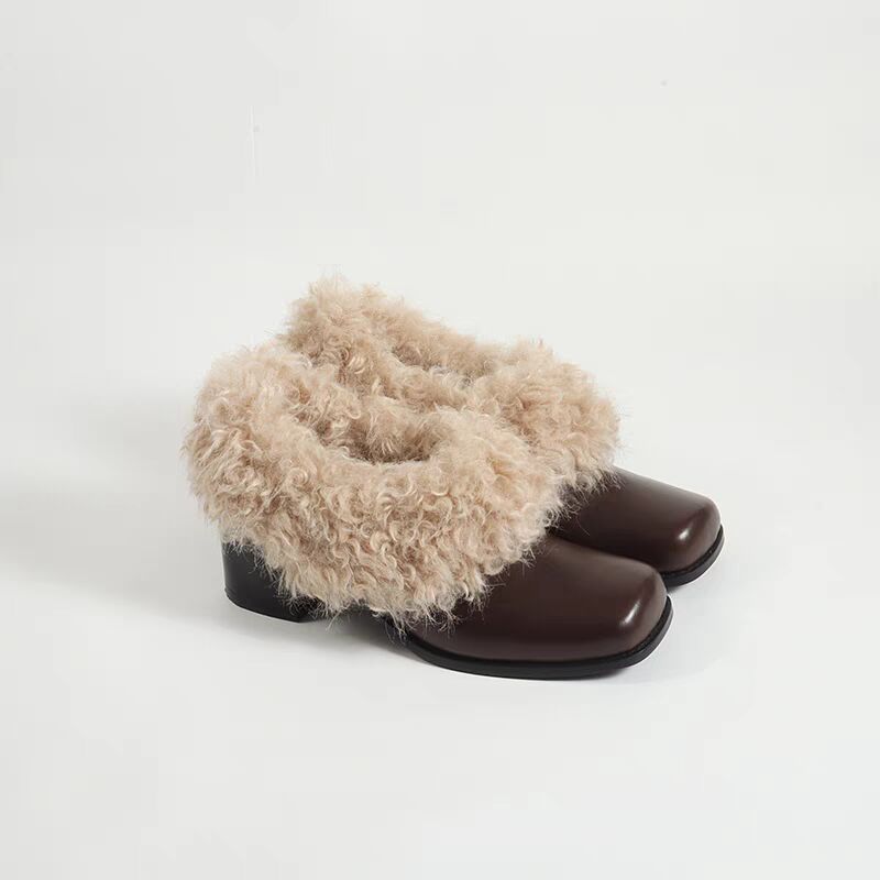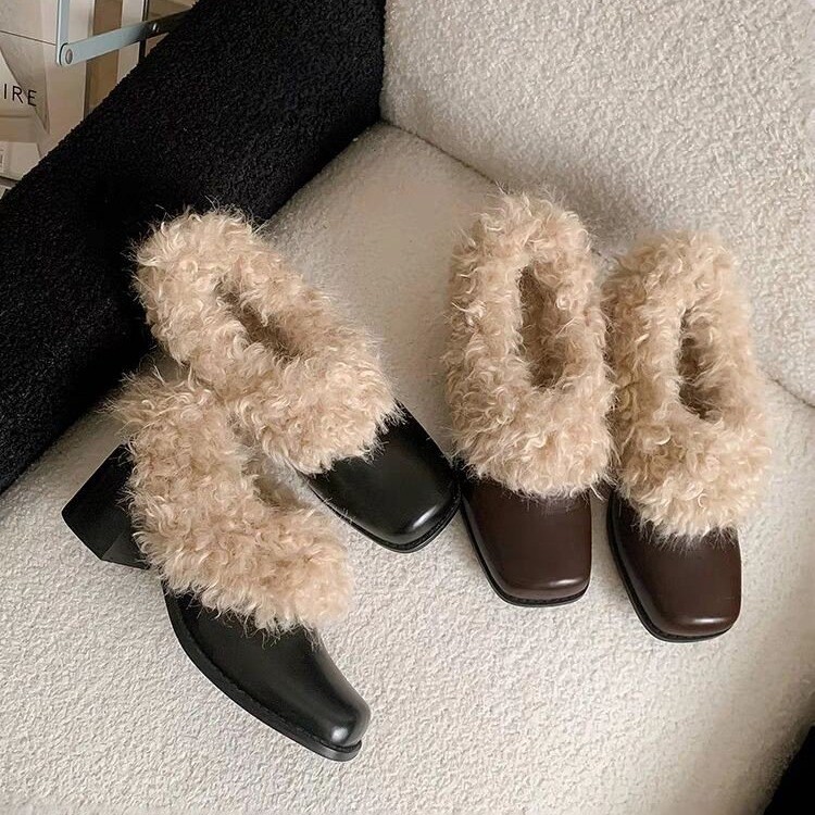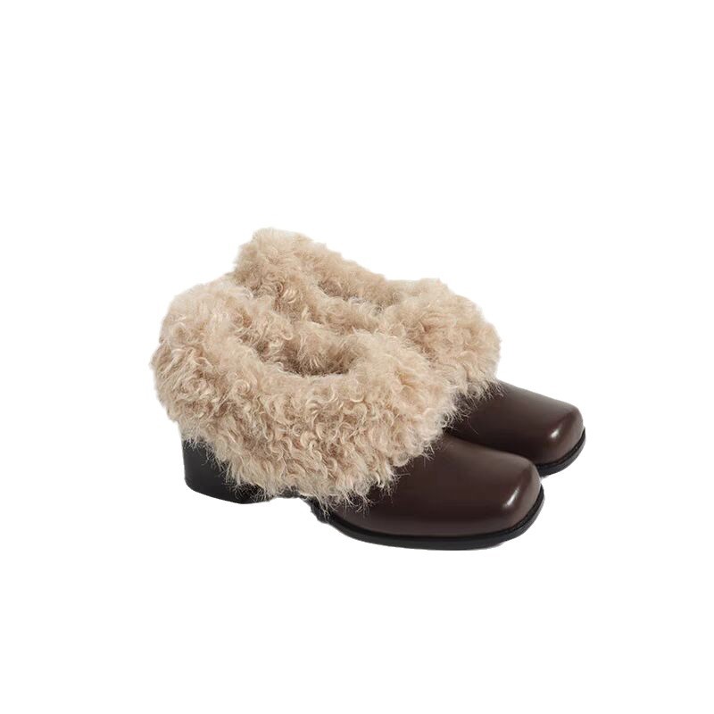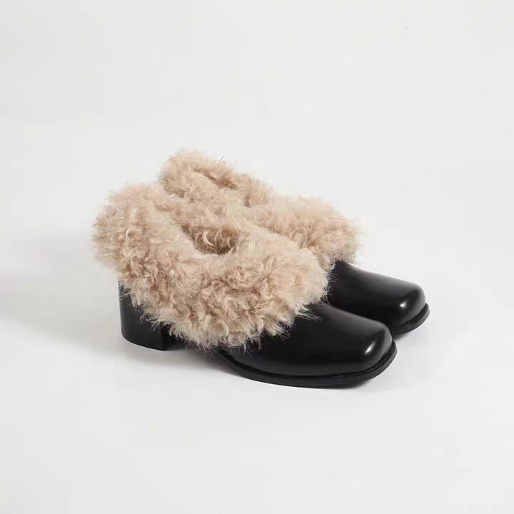 Главная страница > Квадратные меховые теплые туфли на толстом каблуке Lefu обувь Мюллер обувь 2024 осень-зима новая французская каблука плюс бархатная обувь женская