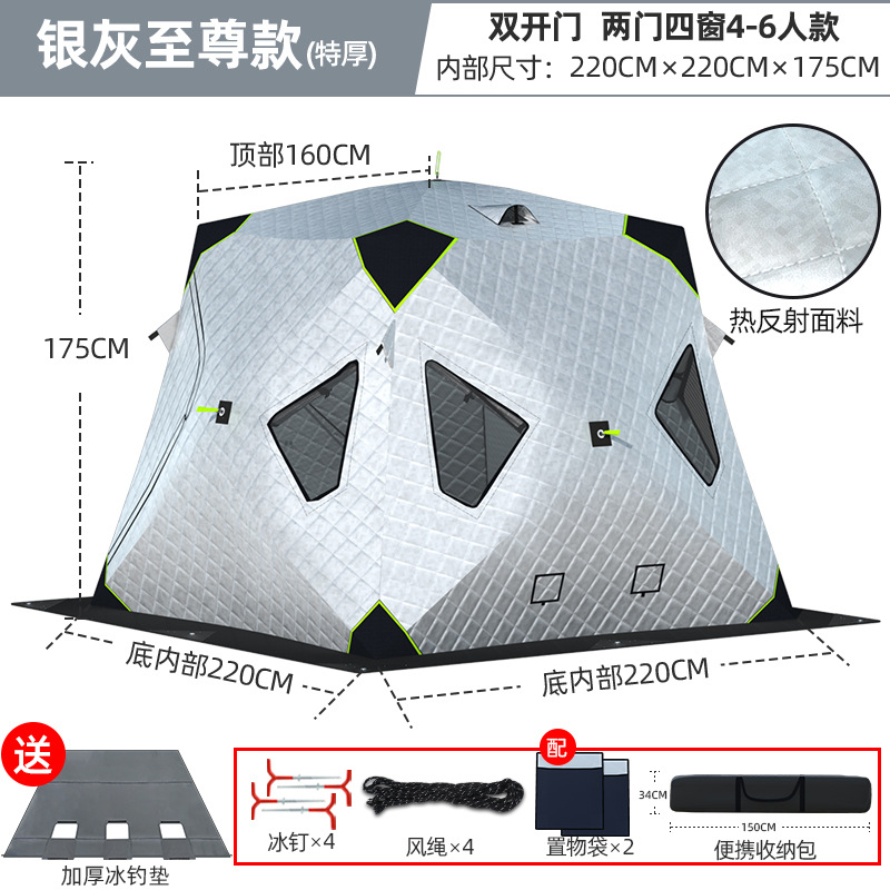 Высочайшая теплоконцентрирующая башня, ультратолстая четырехугольная модель, серебро 4-6 человек + коврик для зимней рыбалки