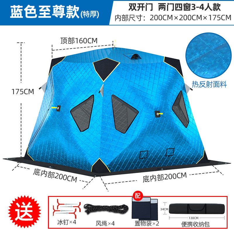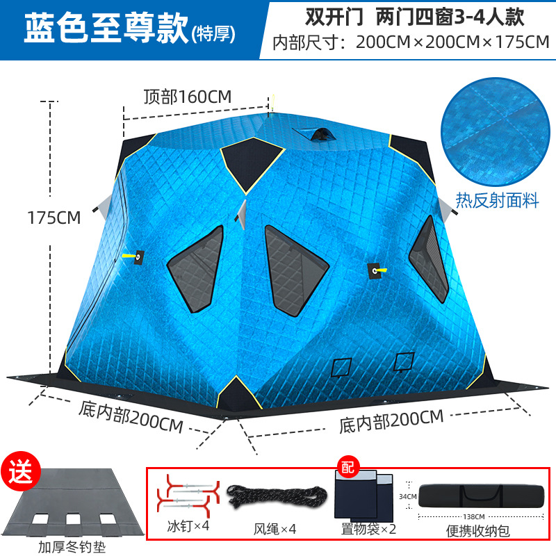 Высочайшая теплоконцентрирующая башня, ультратолстая четырехугольная модель 3-4 человека, синяя + коврик для зимней рыбалки