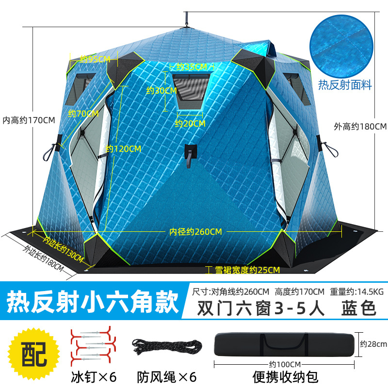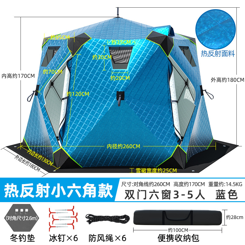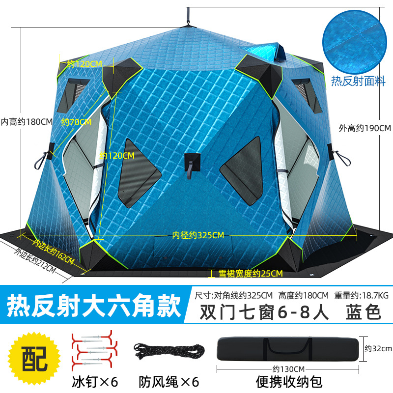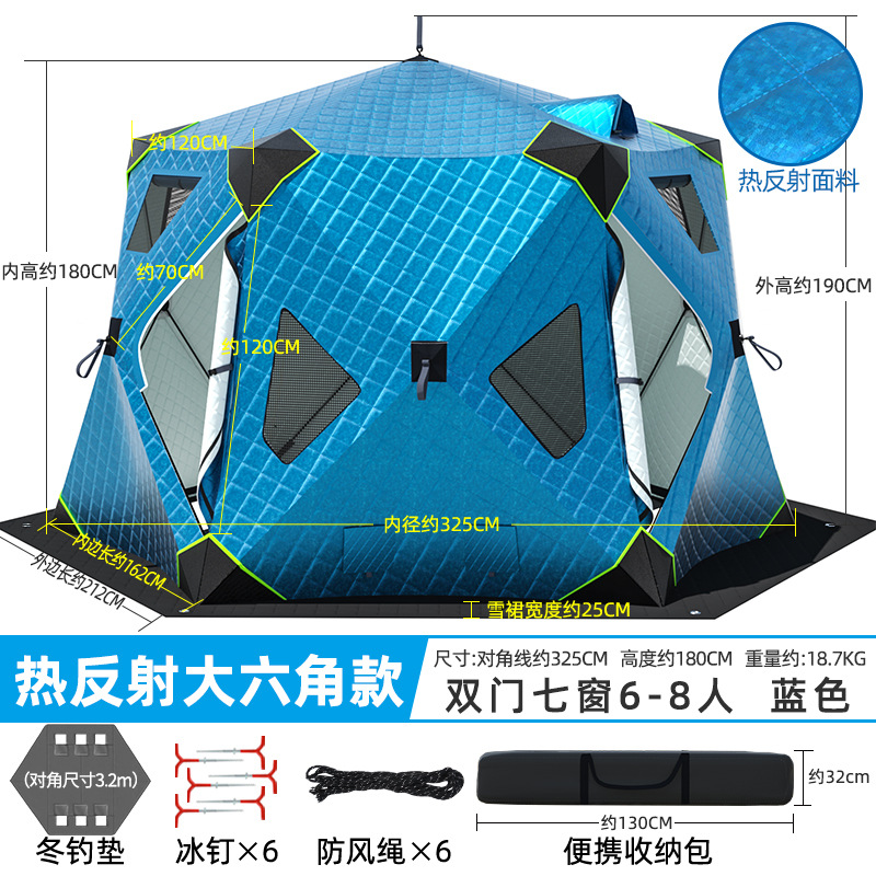 Высочайшая теплоконцентрирующая башня, ультратолстая шестиугольная модель, 6-8 человек, синяя + коврик для зимней рыбалки
