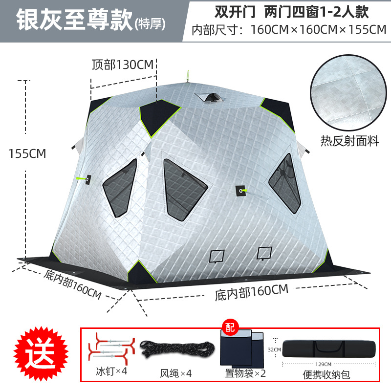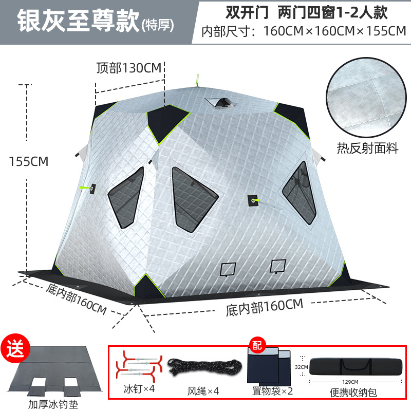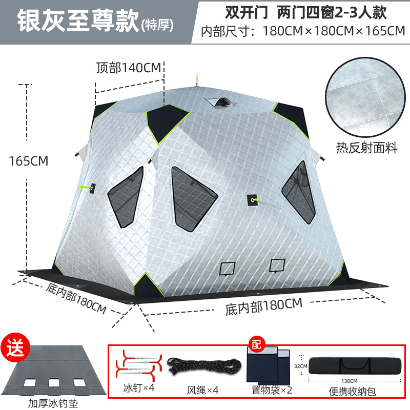 Высочайшая теплоконцентрирующая башня, ультратолстая четырехугольная модель, серебро 2-3 человека + коврик для зимней рыбалки