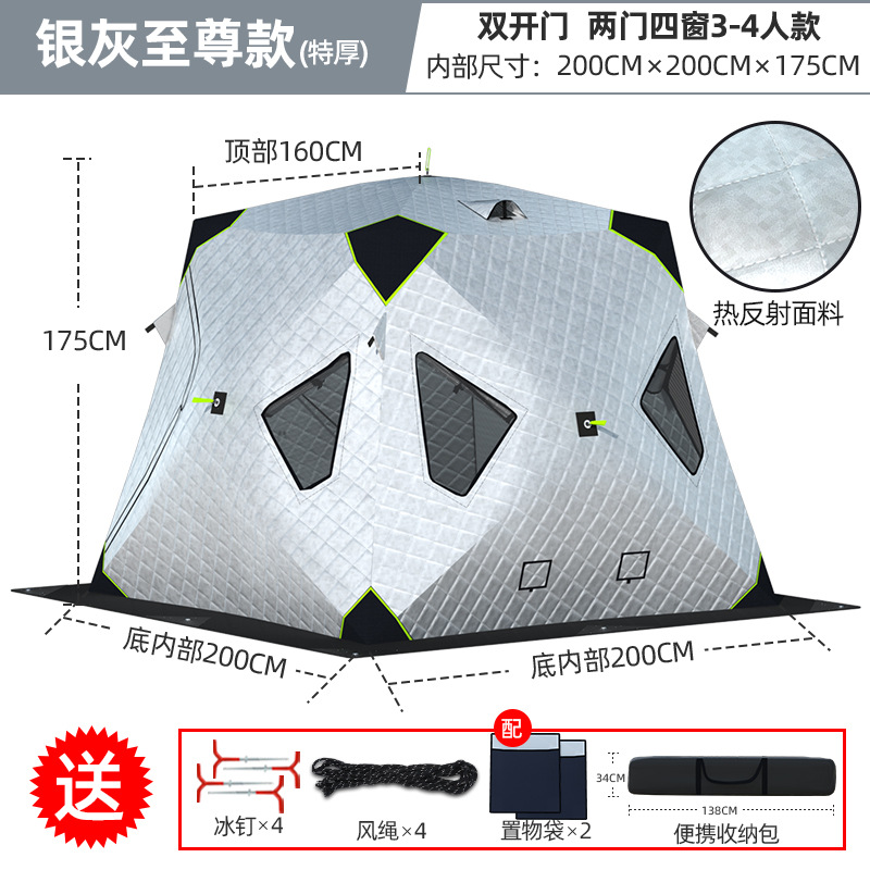 Высочайшая теплоконцентрирующая башня, ультратолстая четырехугольная модель, серебро 3-4 человека + коврик для зимней рыбалки