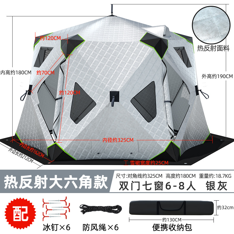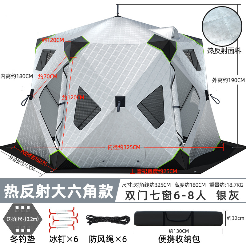Высочайшая теплоконцентрирующая башня, ультратолстая шестиугольная модель, серебро 6-8 человек + коврик для зимней рыбалки