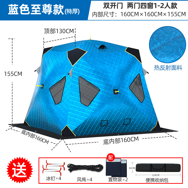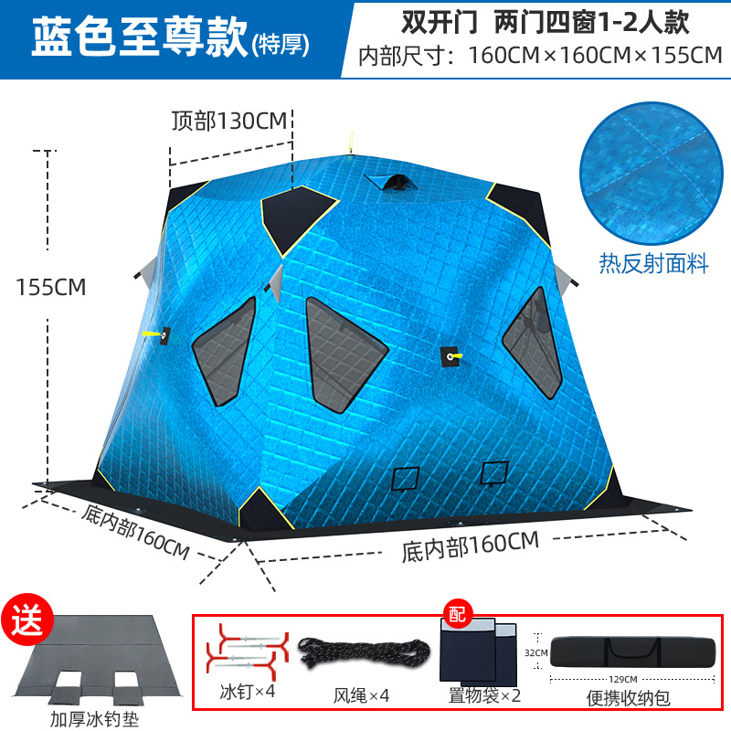 Высочайшая теплоконцентрирующая башня, ультратолстая четырехугольная модель, 1-2 человека, синяя + коврик для зимней рыбалки