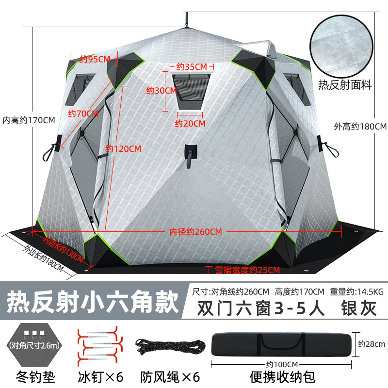 Высочайшая теплоконцентрирующая башня, ультратолстая шестиугольная модель, серебро 3-5 человек + коврик для зимней рыбалки