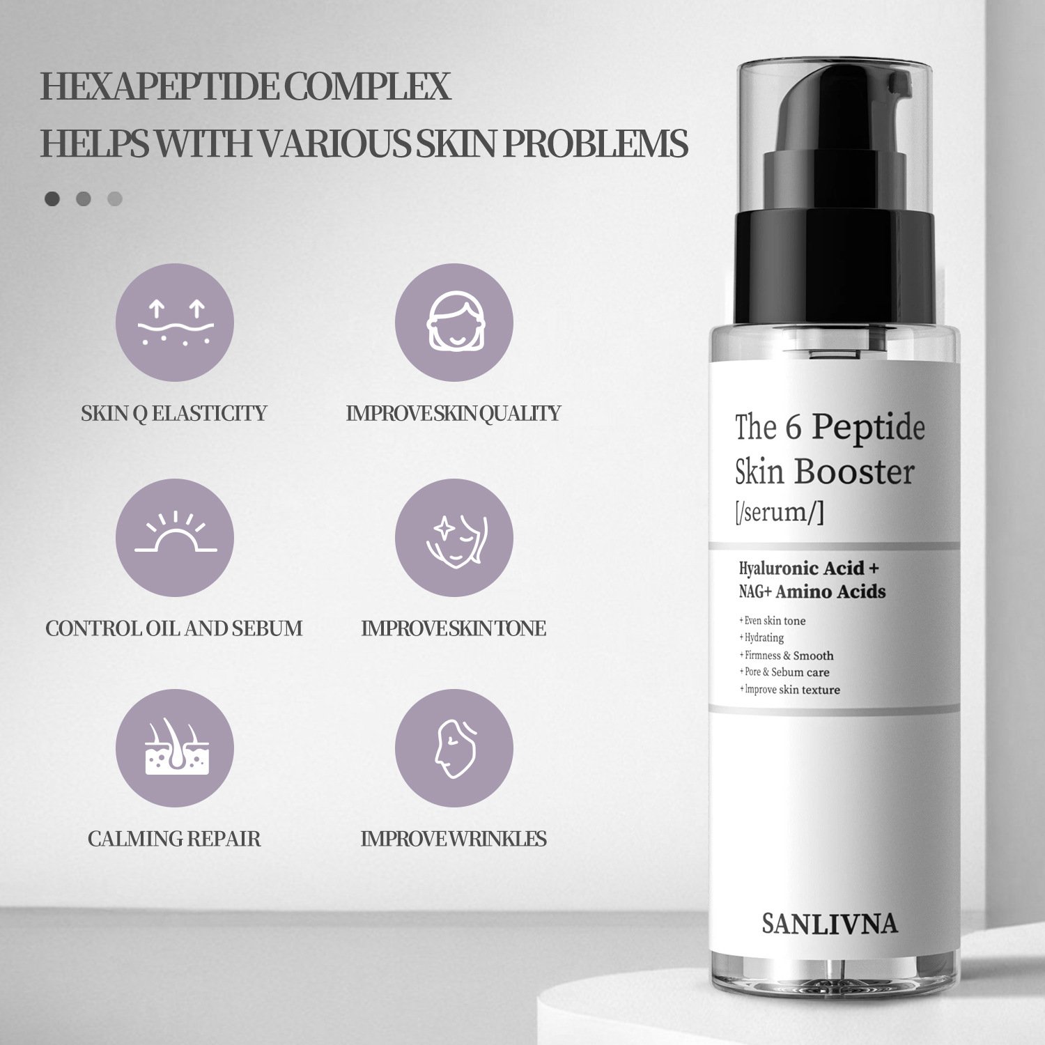 Главная страница > SANLIVNA Six Peptide Original Essence Peptide Skin Booster Укрепляющий против морщин 6 пептидов
