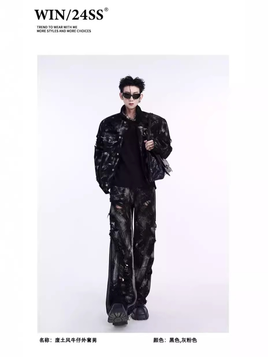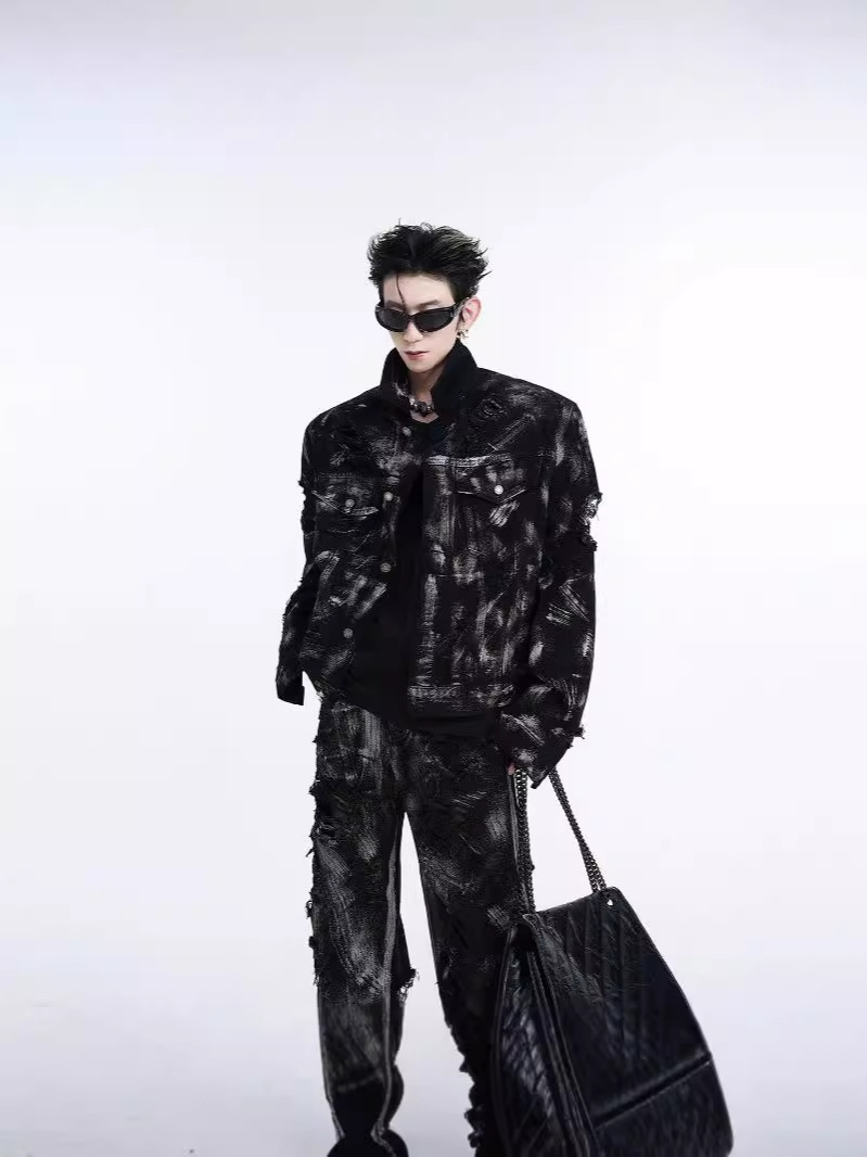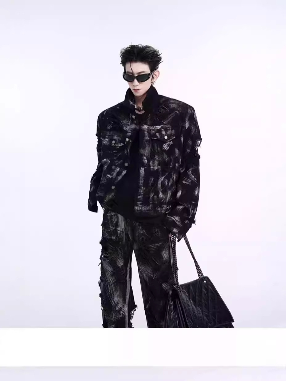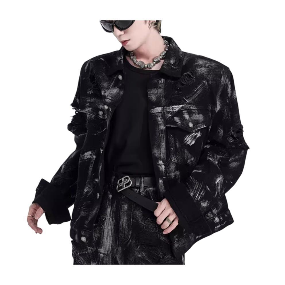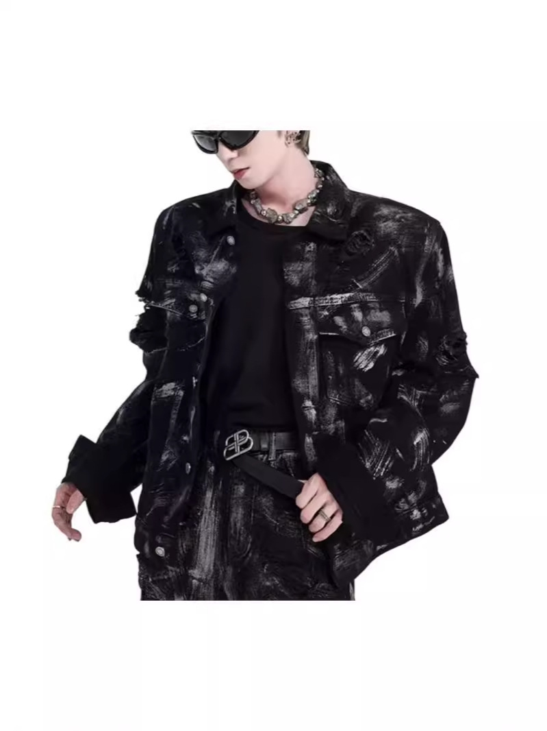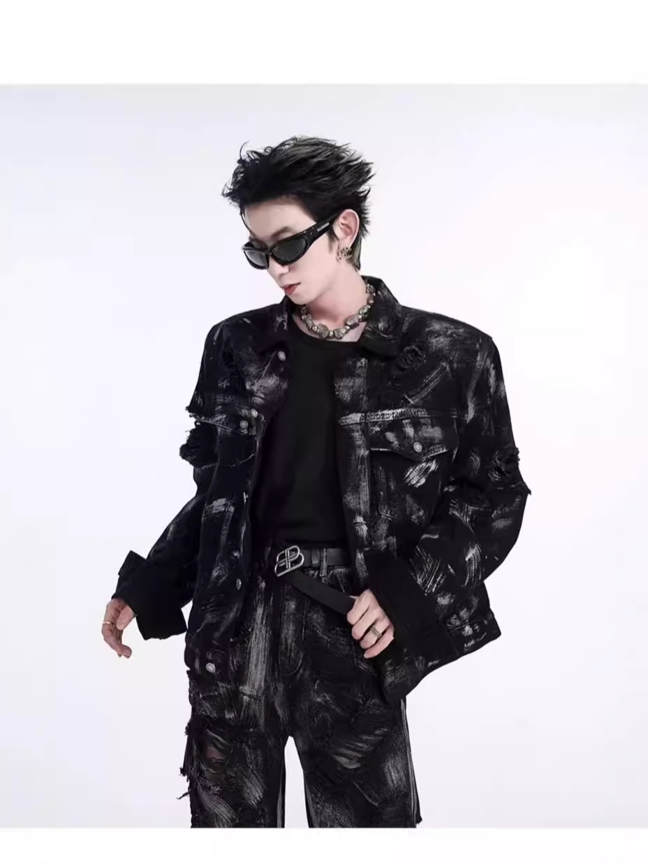 Главная страница > Джинсовая куртка из пустошного ветра мужской европейский и американский уличный граффити моется дырками джинсы Весенняя и осенняя куртка мужской