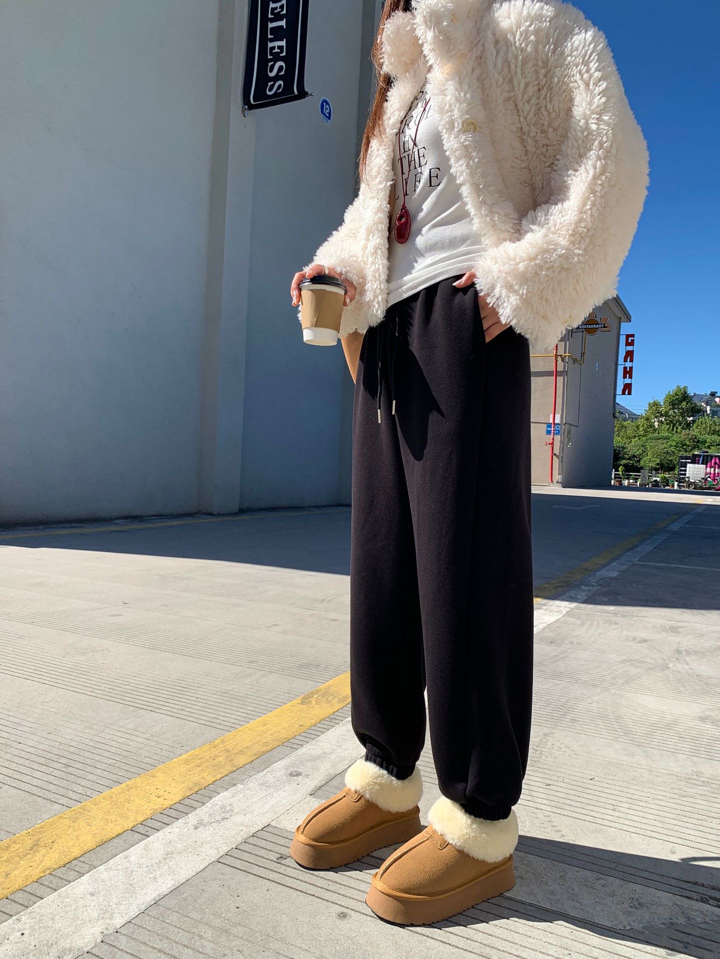 Главная страница > Осень-зима 2025: китайские хлопковые леггинсы на флисовой подкладке, повседневные спортивные штаны с высокой талией, мягкие и восковые свободные новые стильные женские бархатные штаны из ягненка