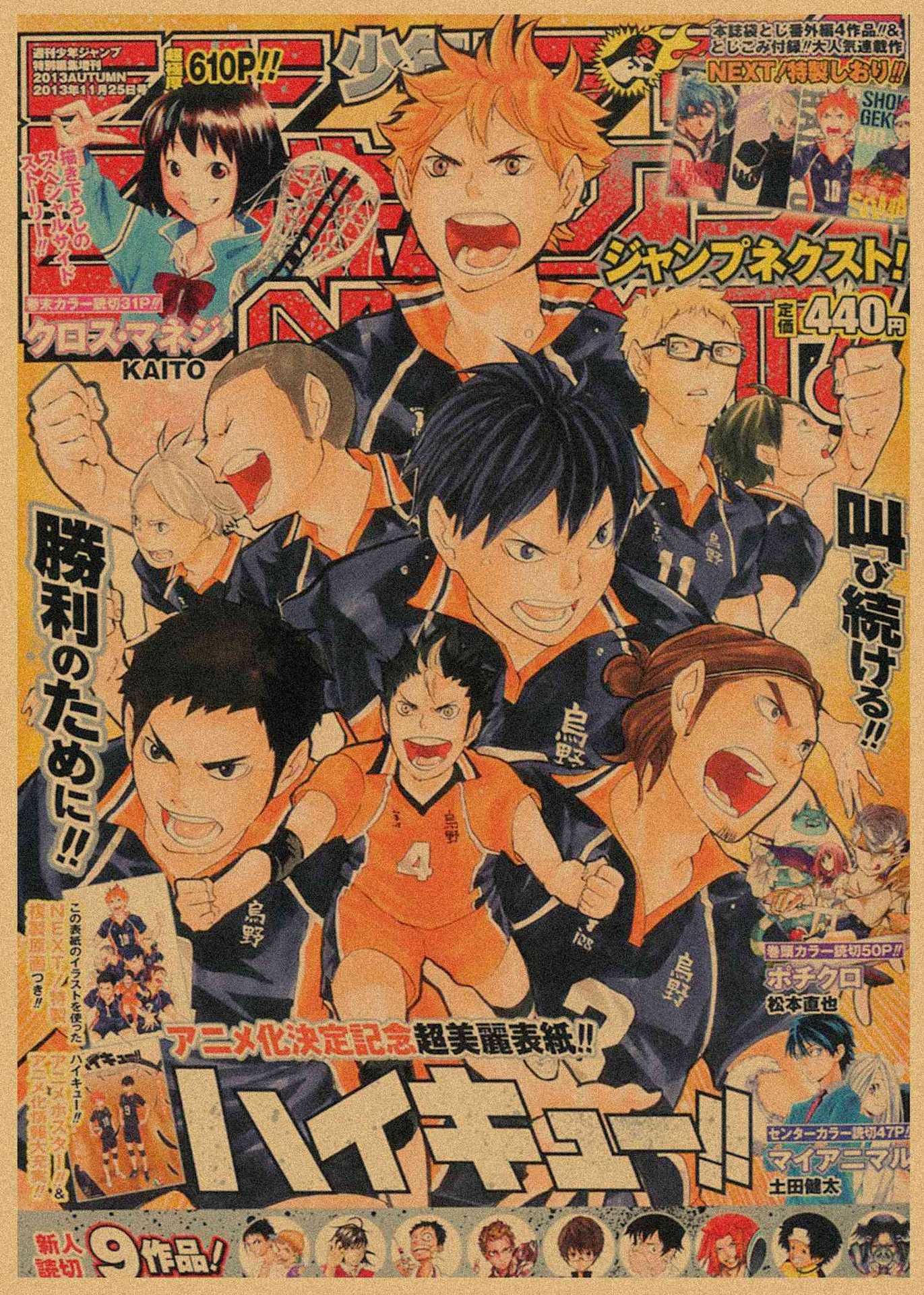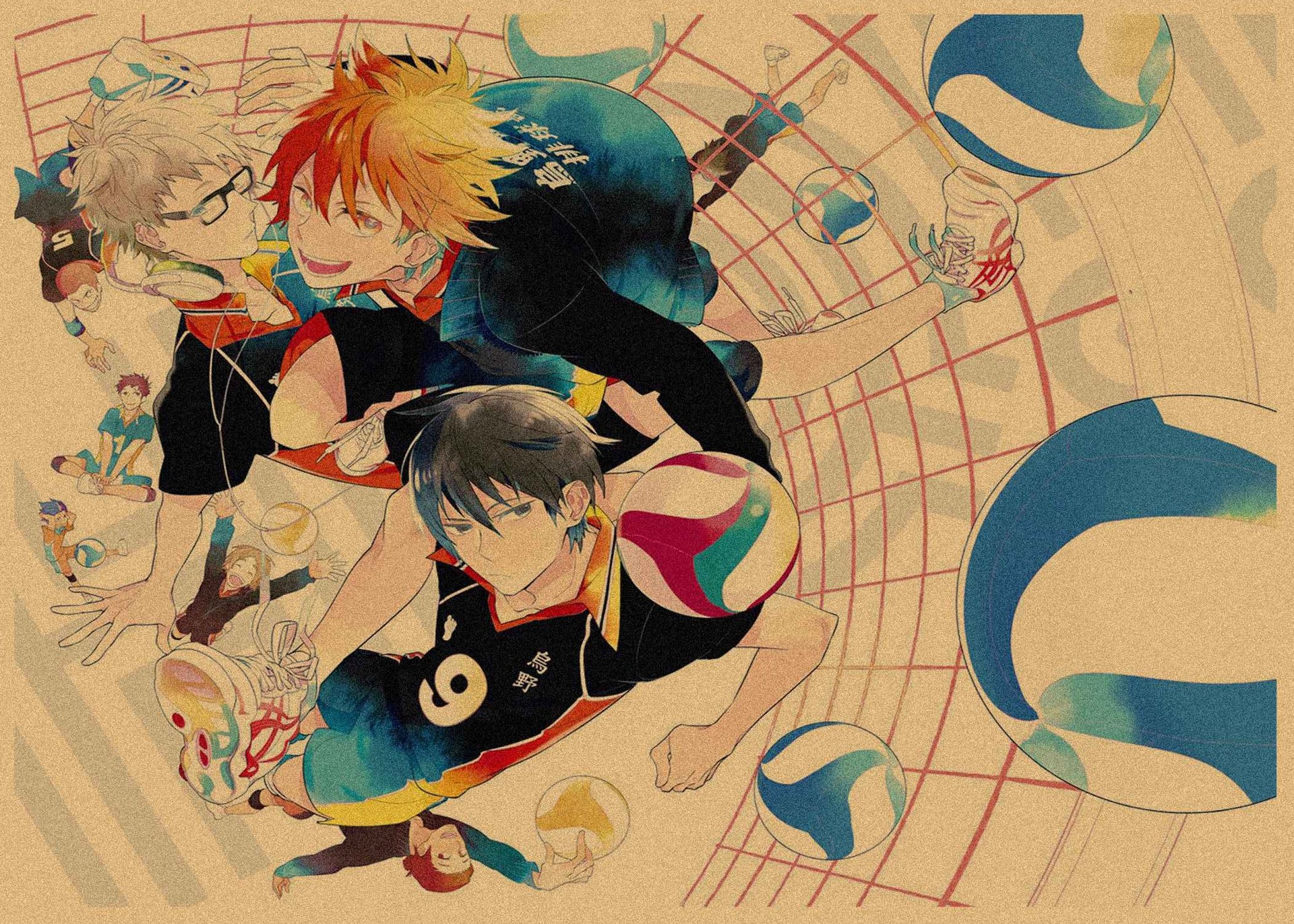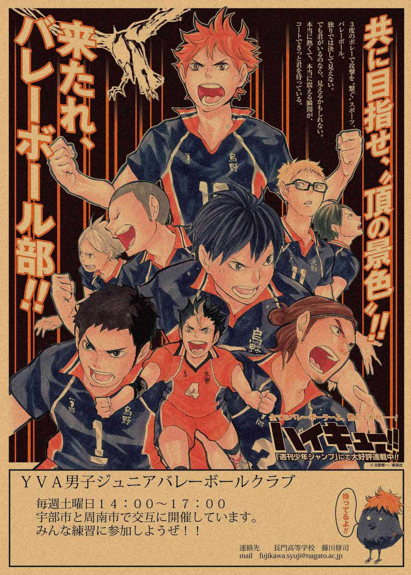Главная страница > Японский аниме волейбол молодежный плакат Hei Xiangyang Yaoshan Feixiong ретро крафт-бумага декоративная настенная роспись 240