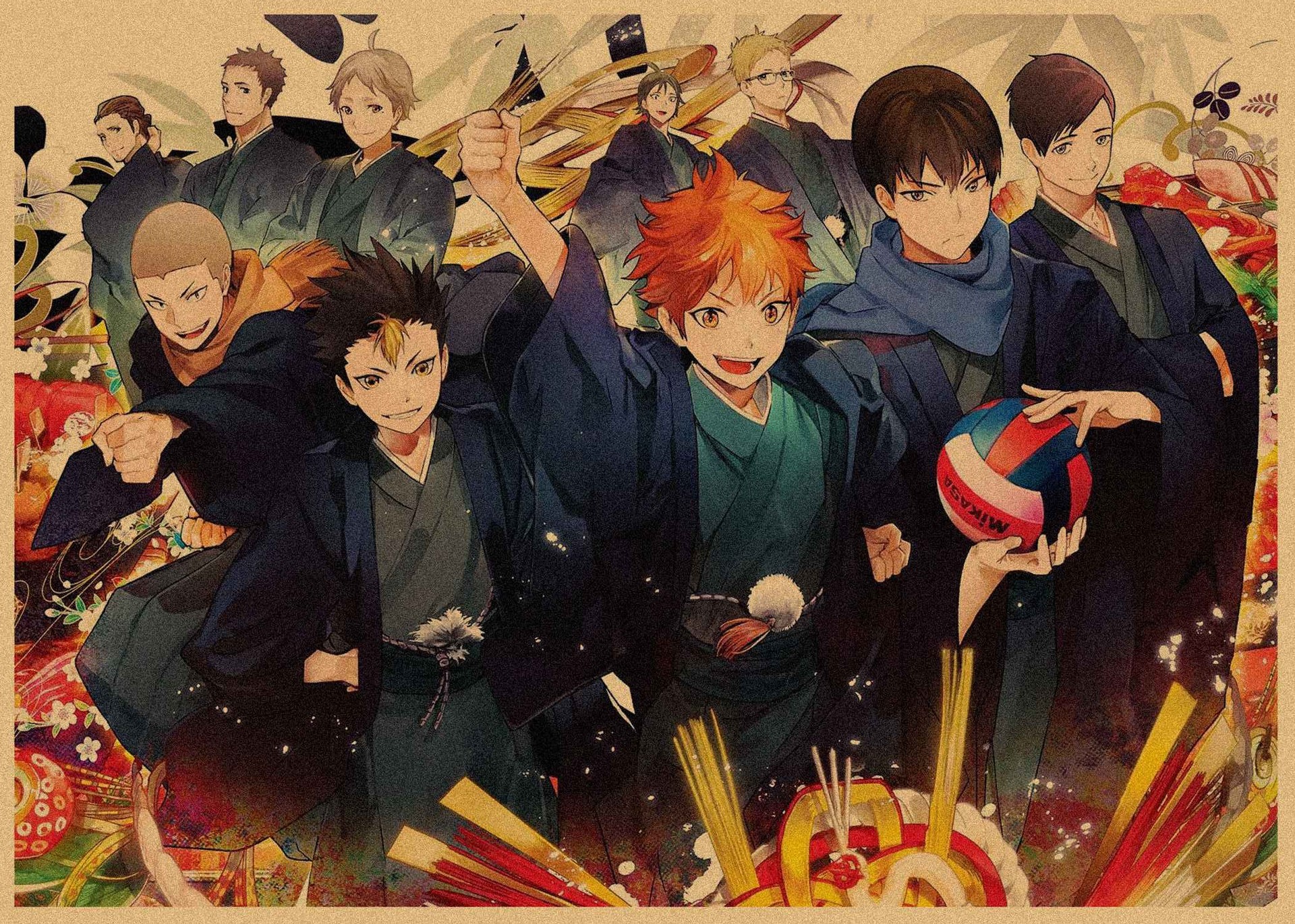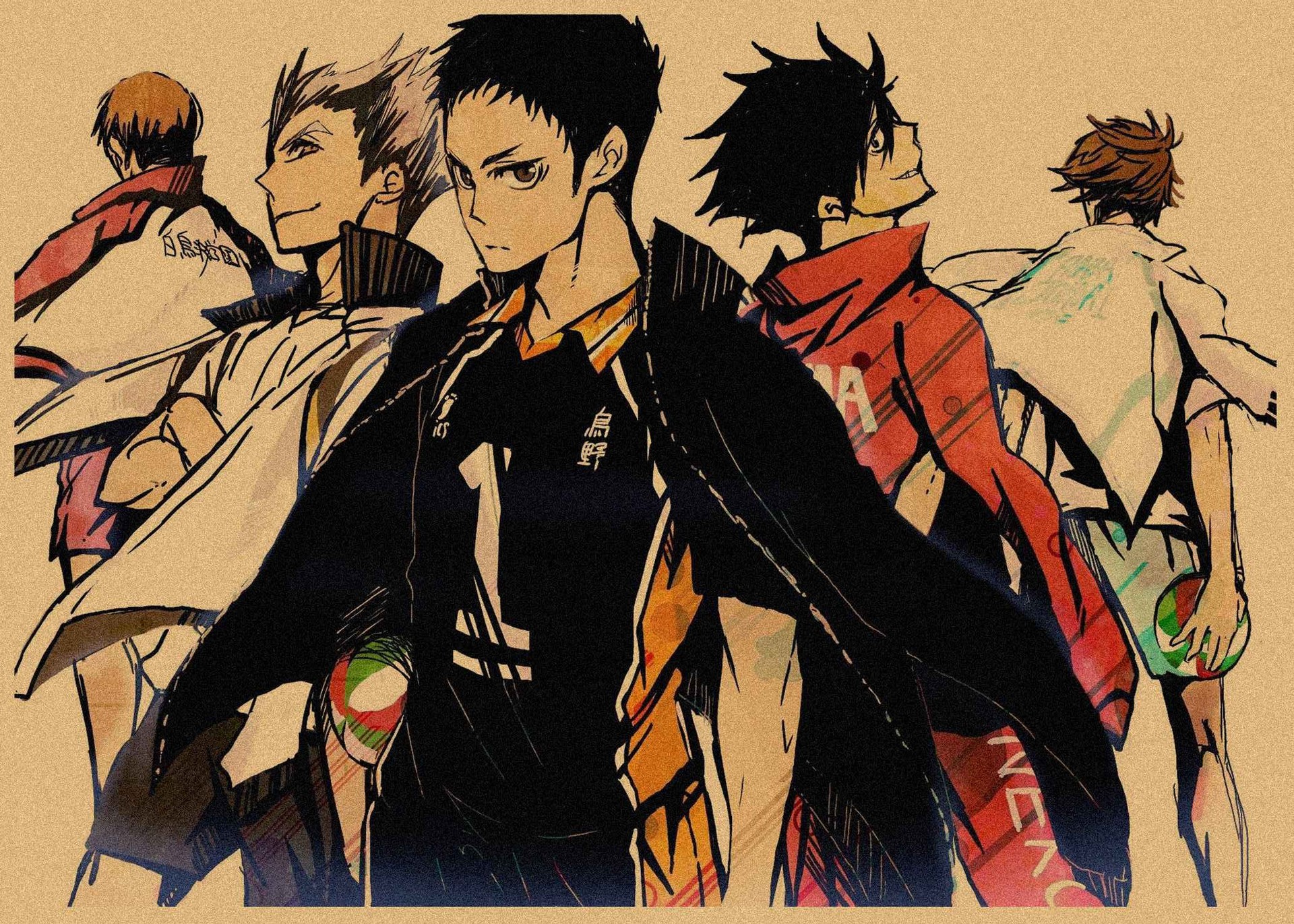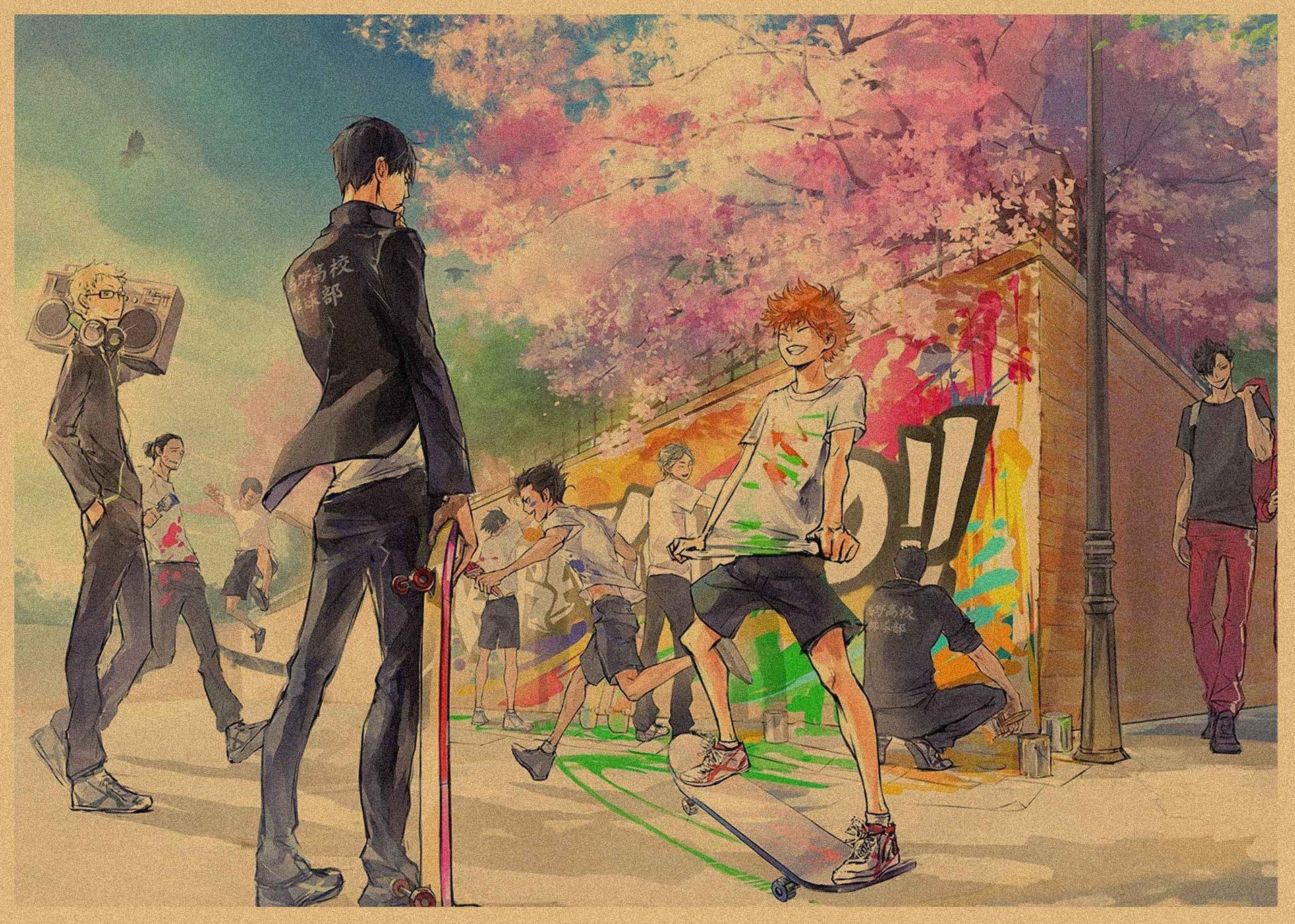 Главная страница > Японский аниме волейбол молодежный плакат Hei Xiangyang Yaoshan Feixiong ретро крафт-бумага декоративная настенная роспись 240