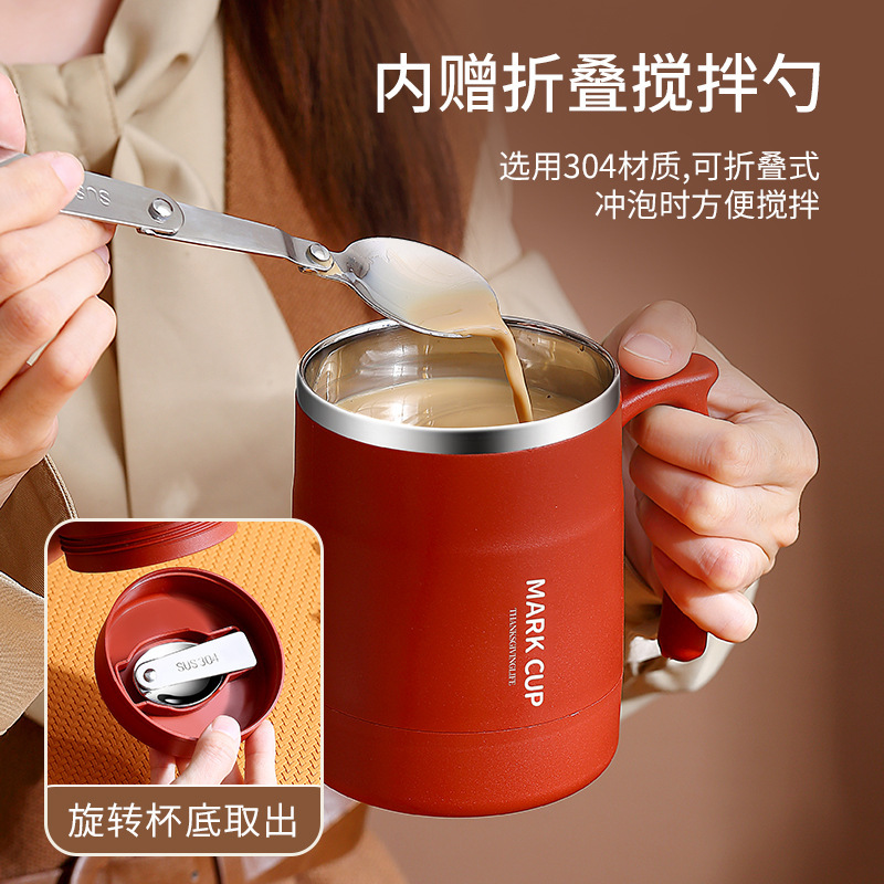 Главная страница > 304 кружка из нержавеющей стали портативная кофейная чашка термос чашка кастрюля бытовая красная чашка для завтрака с ложкой крышка офисная чашка для воды