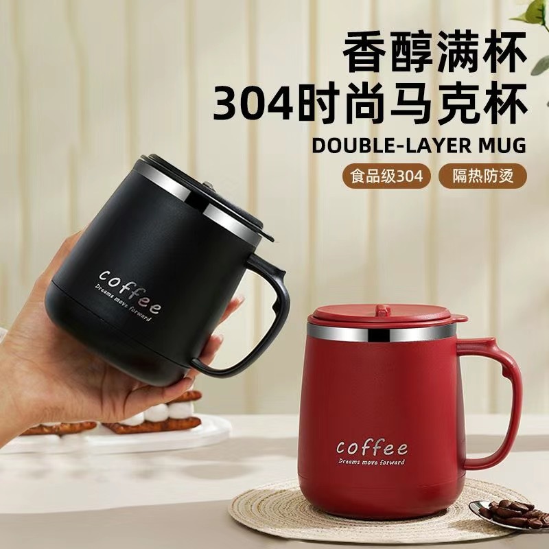 304 кружка из нержавеющей стали портативная кофейная чашка термос чашка кастрюля бытовая красная чашка для завтрака с ложкой крышка офисная чашка для воды