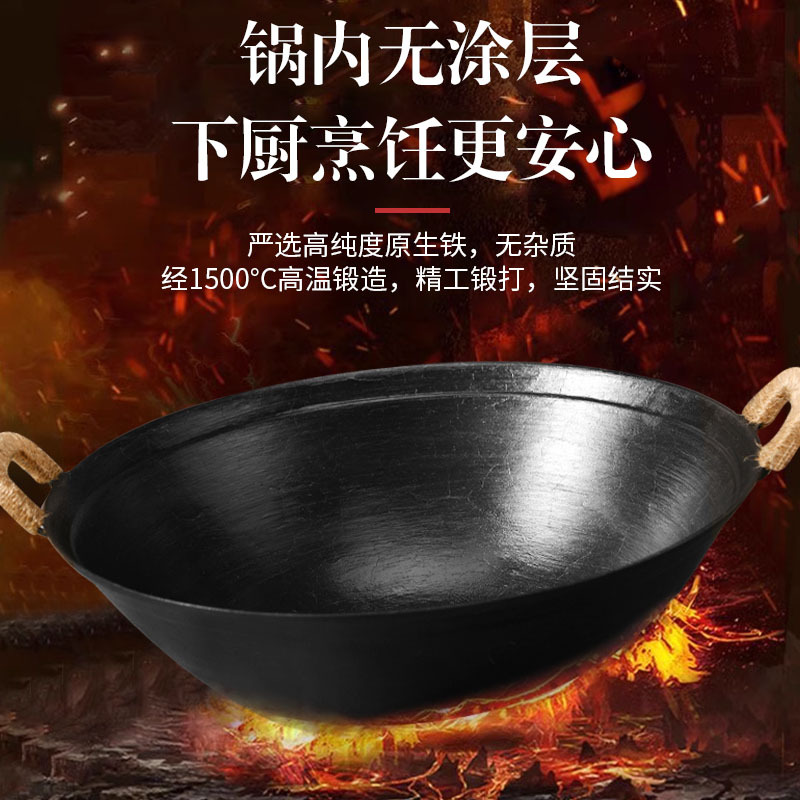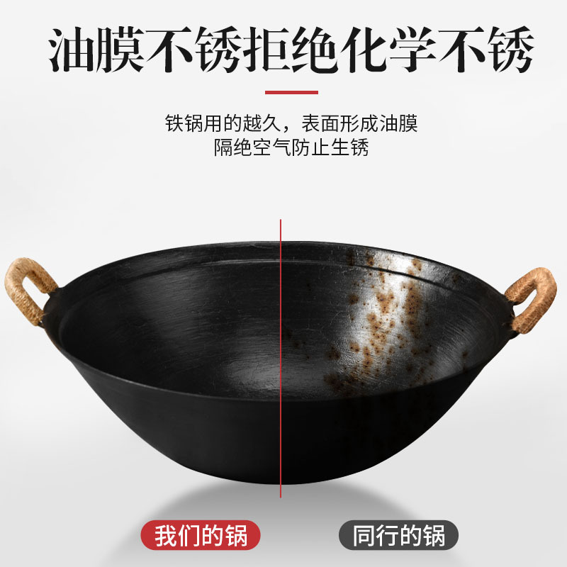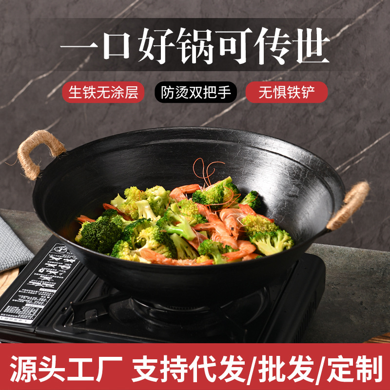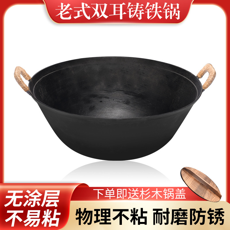 Главная страница > Чугунная сковорода с двумя ручками и антипригарным покрытием без покрытия. Кастрюля Zhangqiu. Традиционная железная сковорода для домашнего использования. Сельская большая утолщенная железная сковорода.