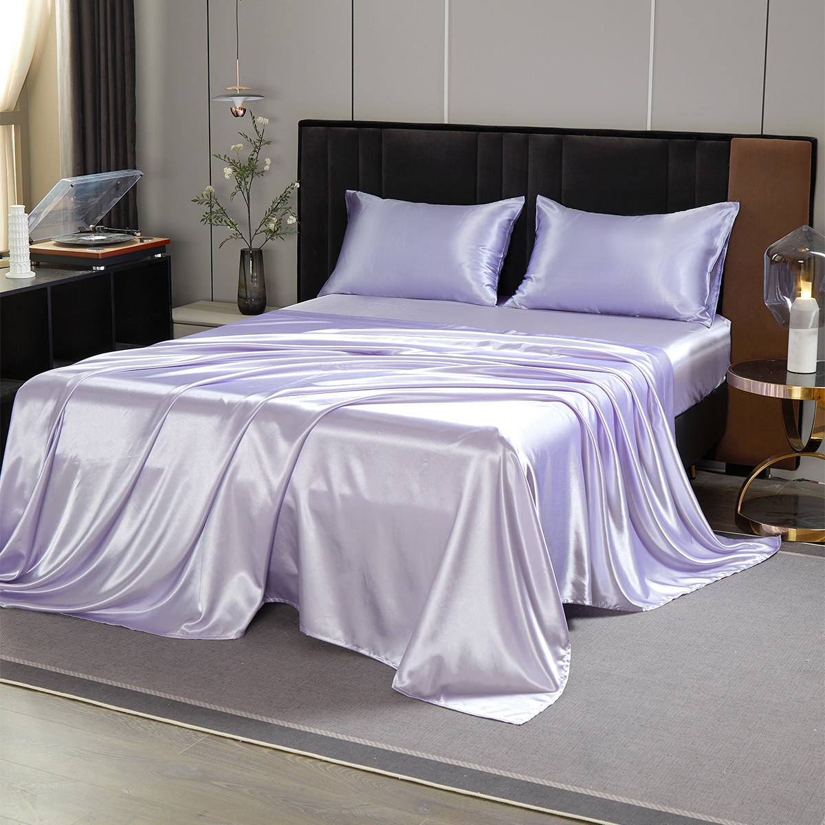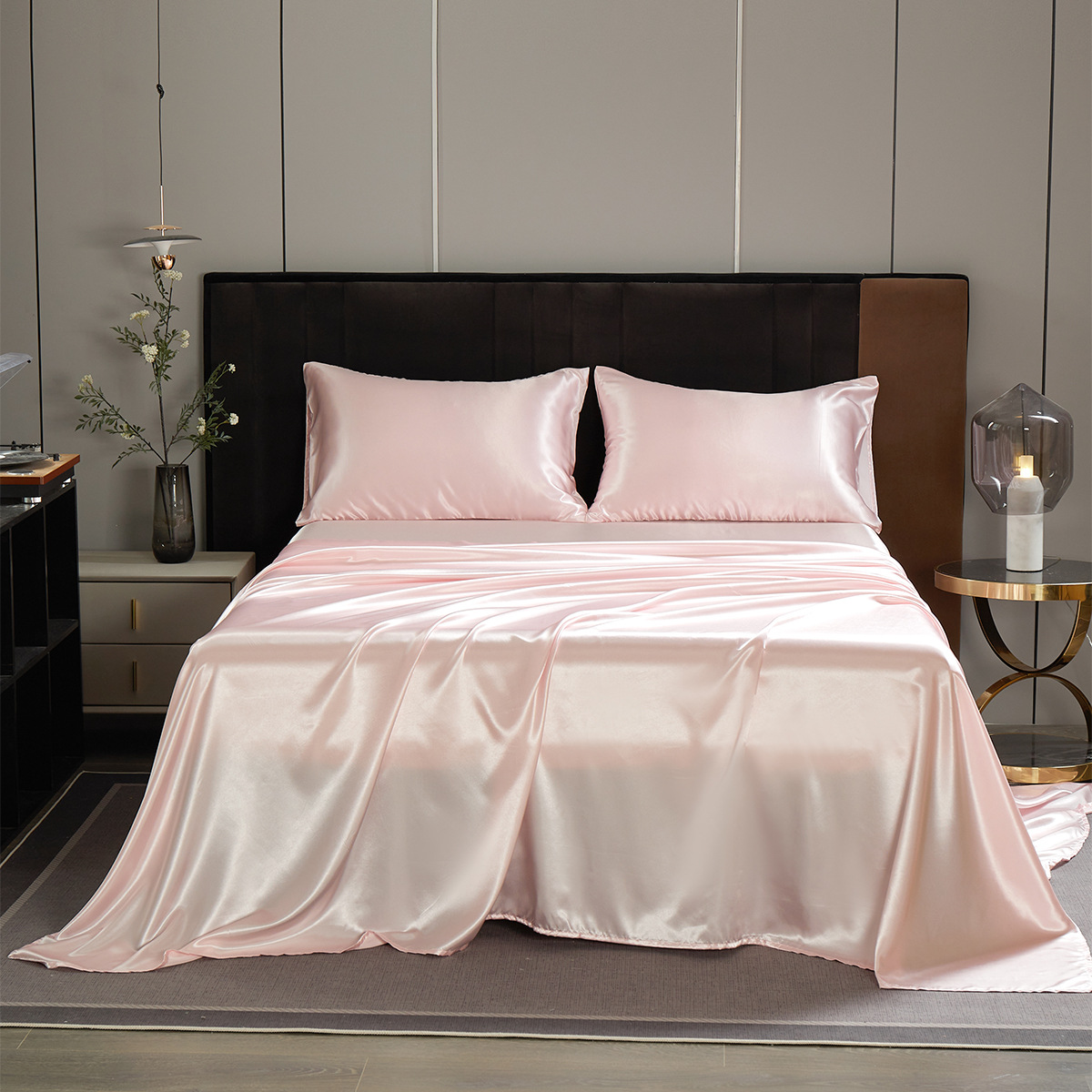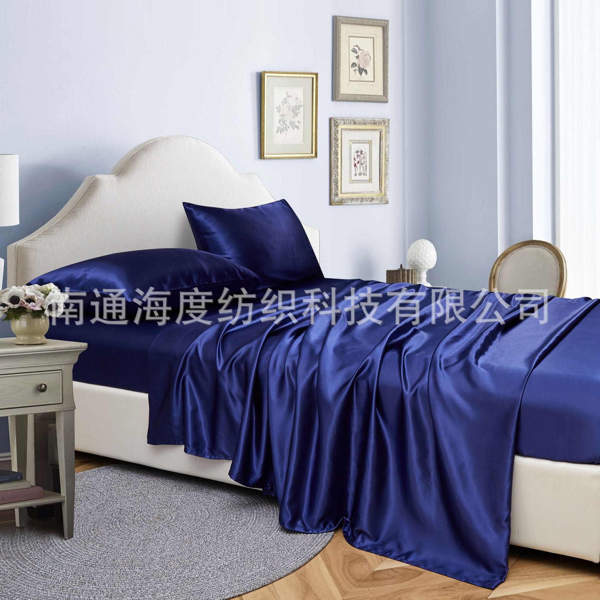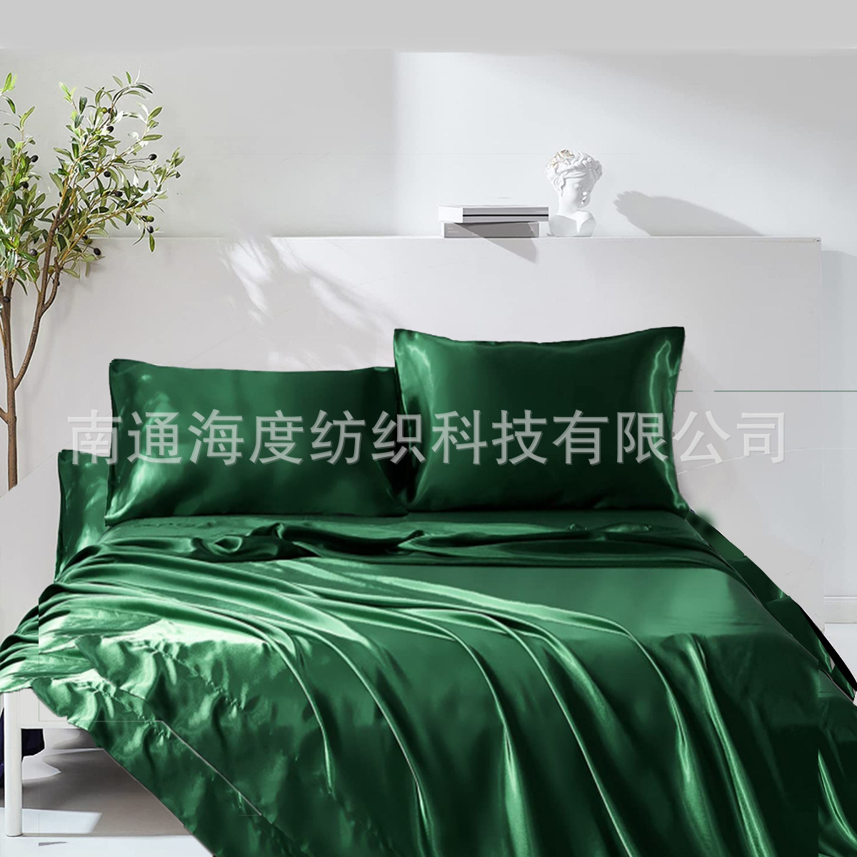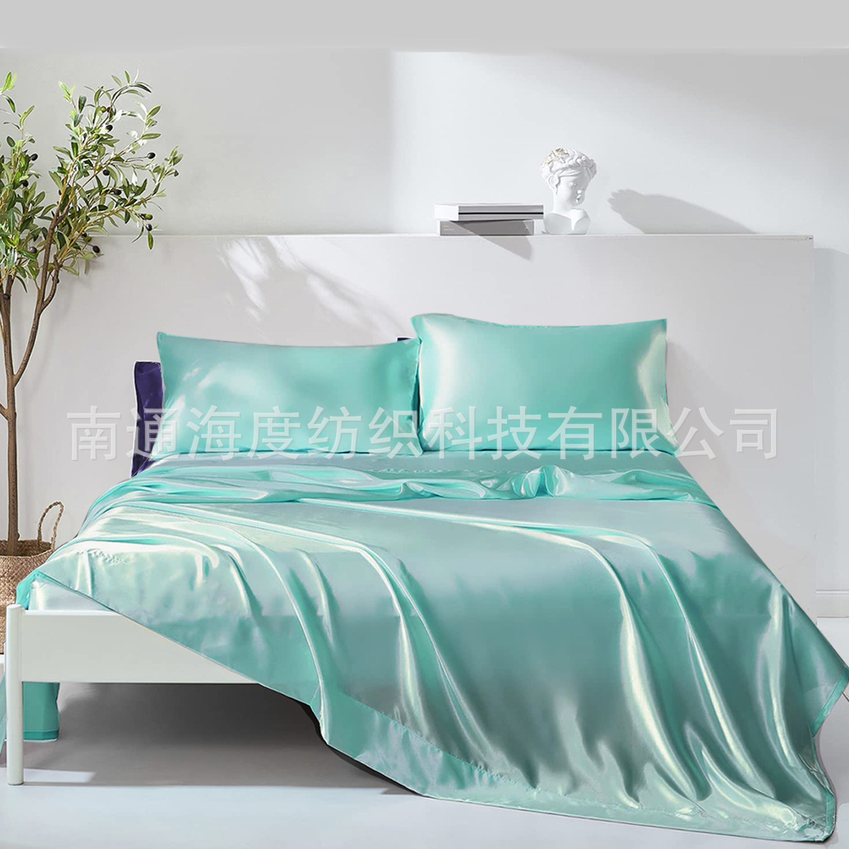 Четырехкомпонентный комплект однотонных атласных простыней для трансграничной внешней торговли, приятные для кожи атласные простыни, простыни на резинке, наволочки, постельное белье Amazon
