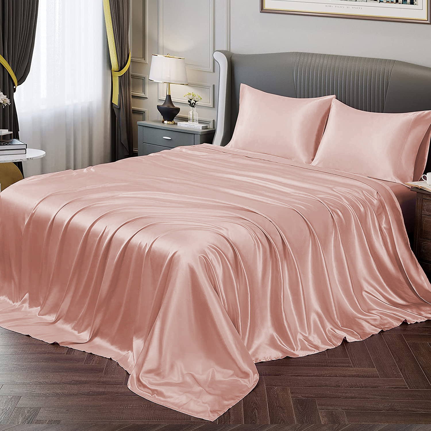 Главная страница > Четырехкомпонентный комплект однотонных атласных простыней для трансграничной внешней торговли, приятные для кожи атласные простыни, простыни на резинке, наволочки, постельное белье Amazon