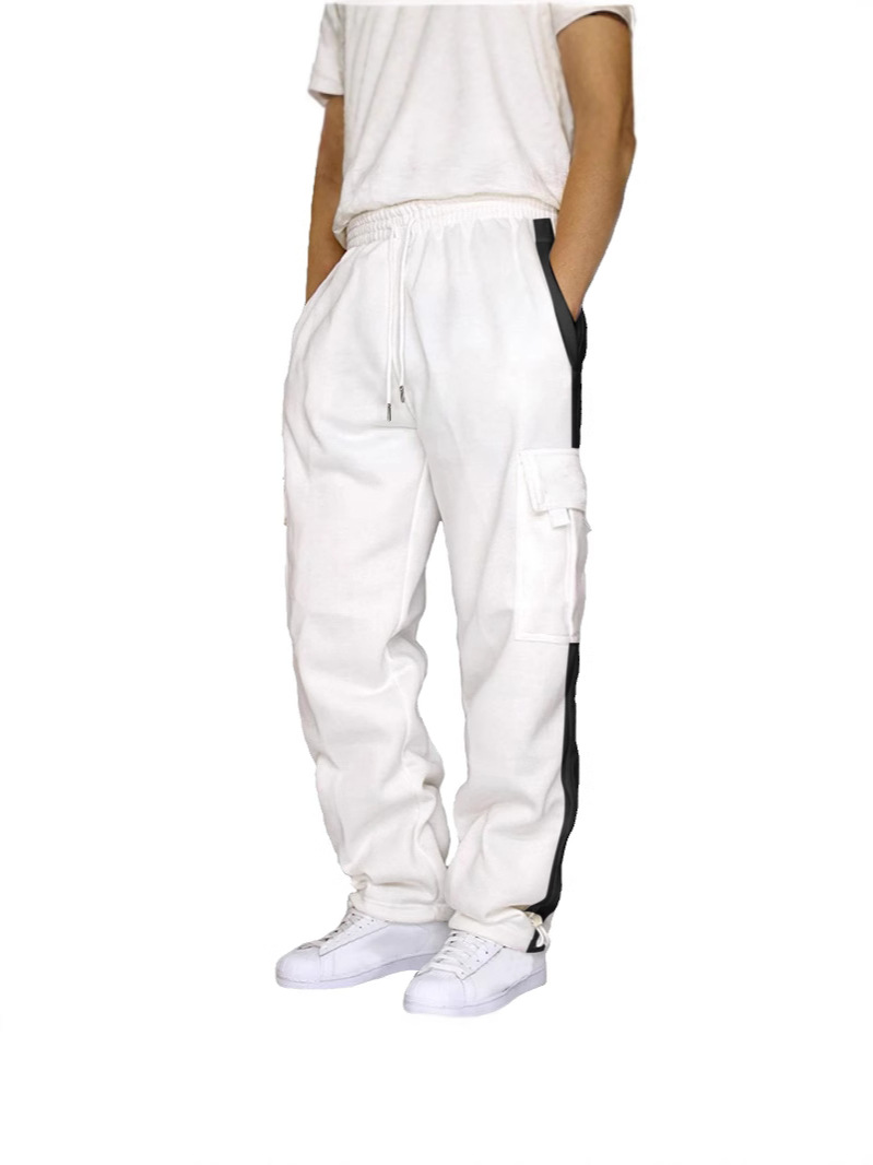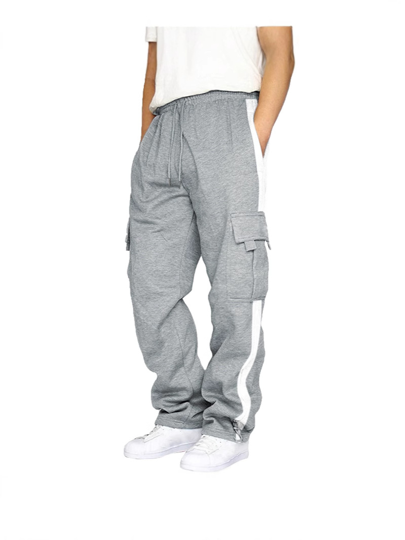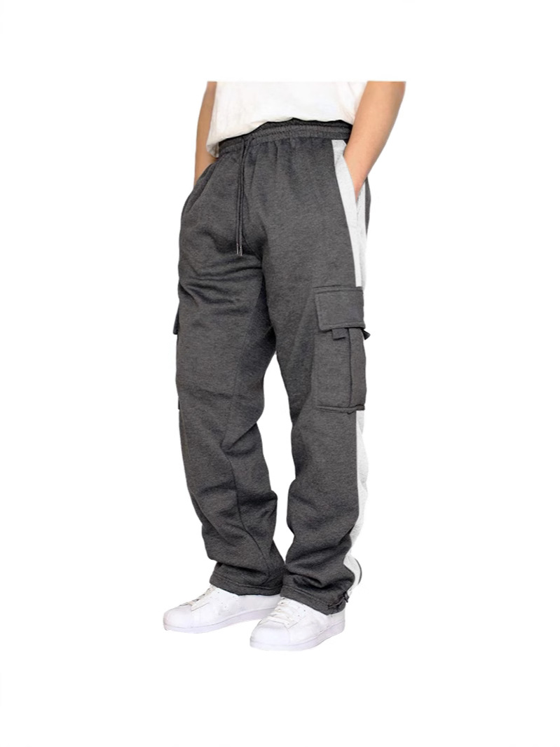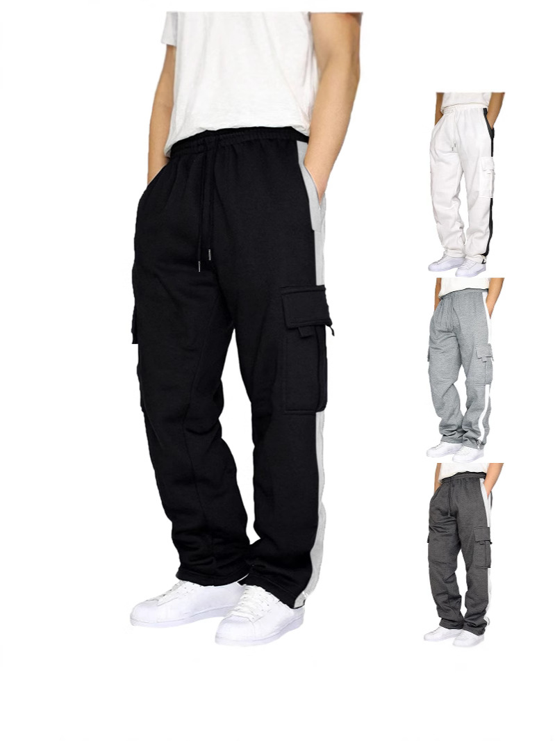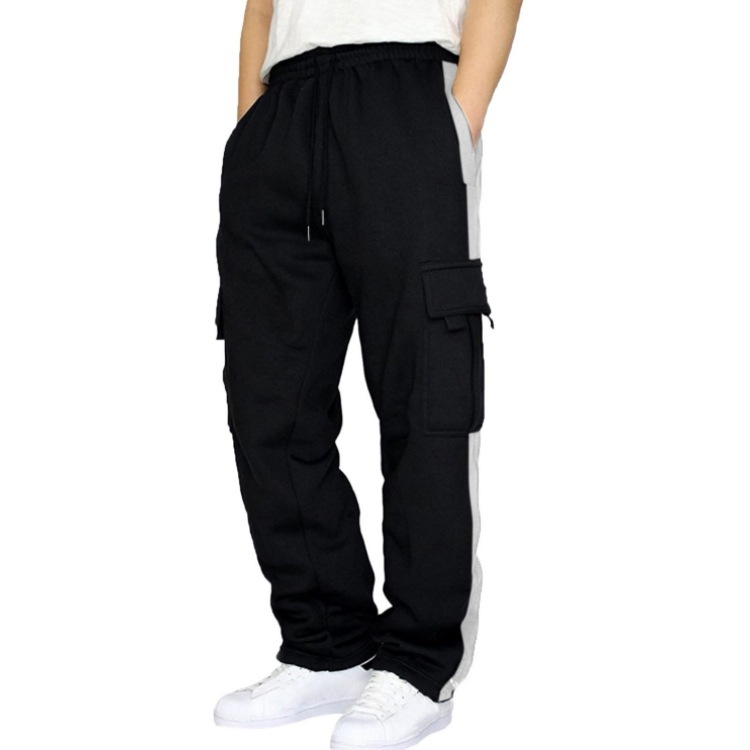 Главная страница > Мужские брюки-карго в американском стиле, длинные брюки с большими карманами, осенние однотонные лоскутные повседневные свободные спортивные прямые брюки для внешней торговли, мужские брюки