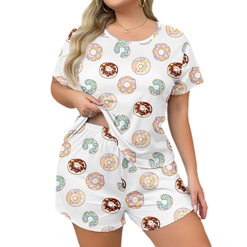 Temu исключительно для трансграничных летних футболок и шорт плюс жир плюс размер женская пижама плюс размер домашний костюм повседневный набор