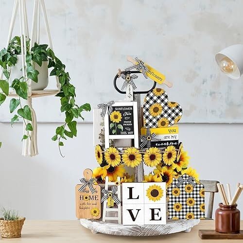 15 штук слоистых поддонов декоративный подсолнух набор деревенский дом подсолнух украшения домашнего стола украшения