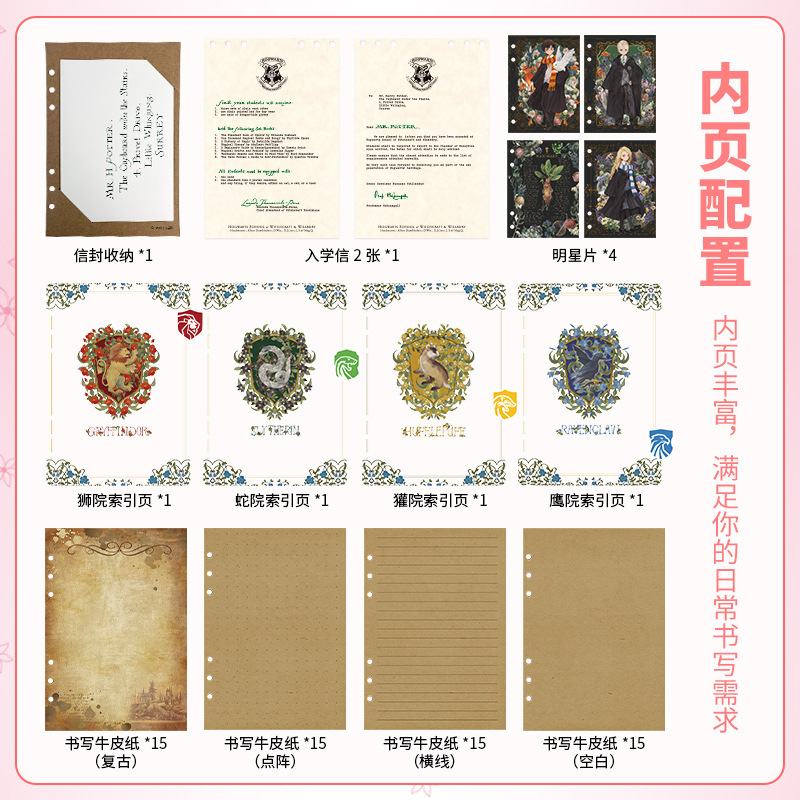 Главная страница > Аутентичный блокнот Гарри Поттера, дневник в стиле ретро, A5, ручная книга с отрывными листами, четыре дома, периферийные устройства Хогвартса