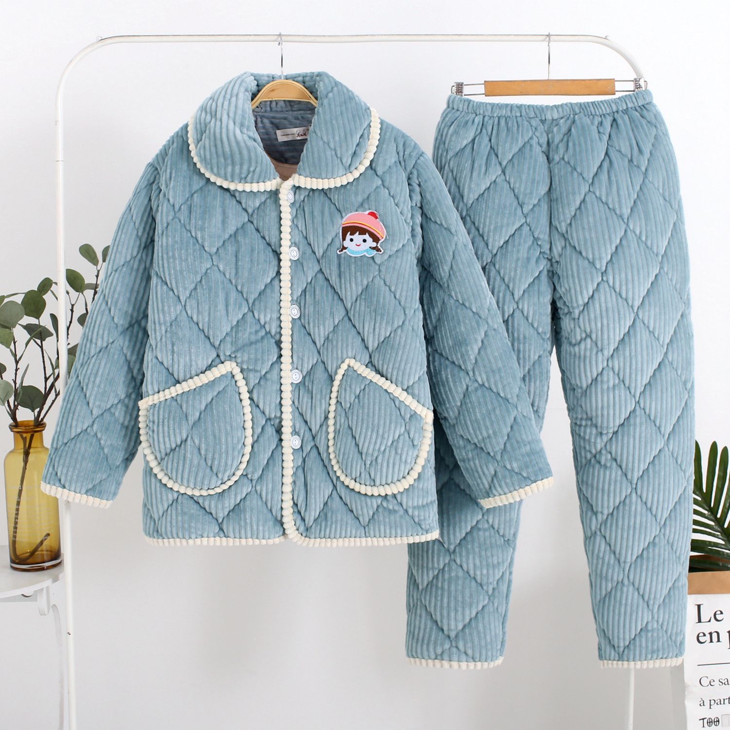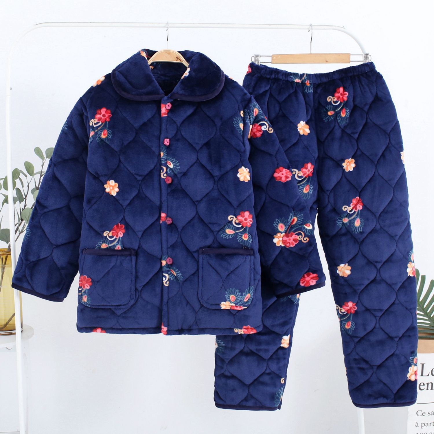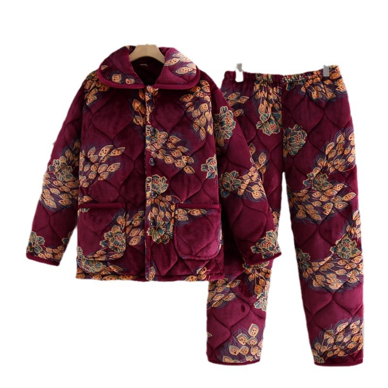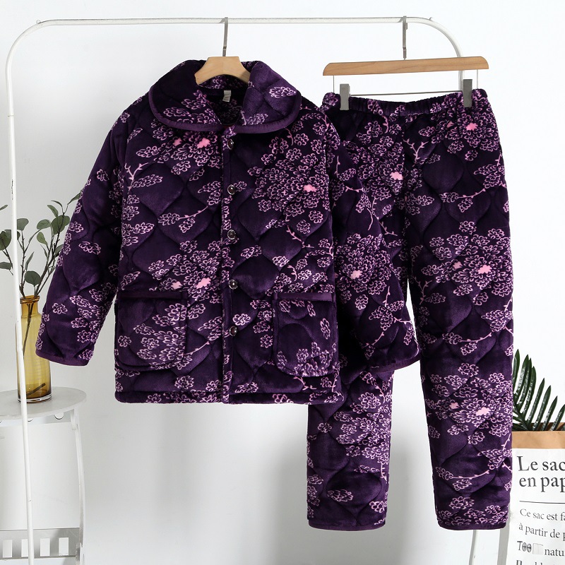 Главная страница > Осенне-зимние стеганые пижамы для мам, Женская утолщенная Фланелевая пижама на флисовой подкладке для среднего и пожилого возраста, плюс размер, костюм для домашней одежды