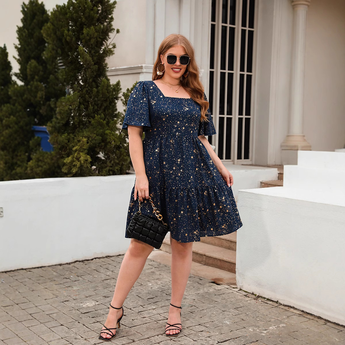 Главная страница > Amazon с бронзовым принтом, повседневное Свободное платье, вечернее элегантное платье, женская одежда больших размеров