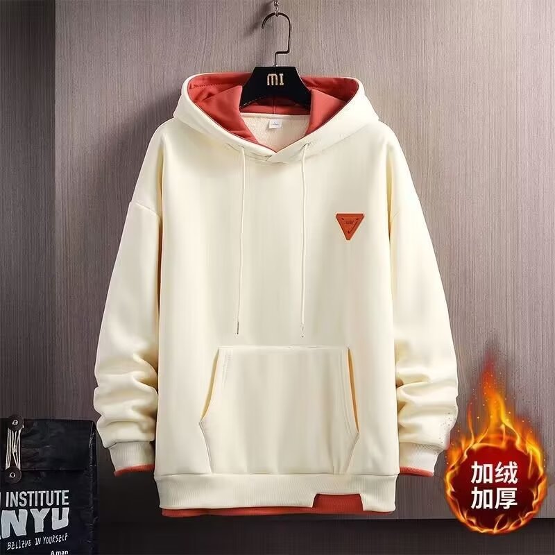 Главная страница > Американский спортивный мужской свитер с капюшоном мужской весной и осенью новый бархатный толстый свободный повседневный топ с длинными рукавами белый простой