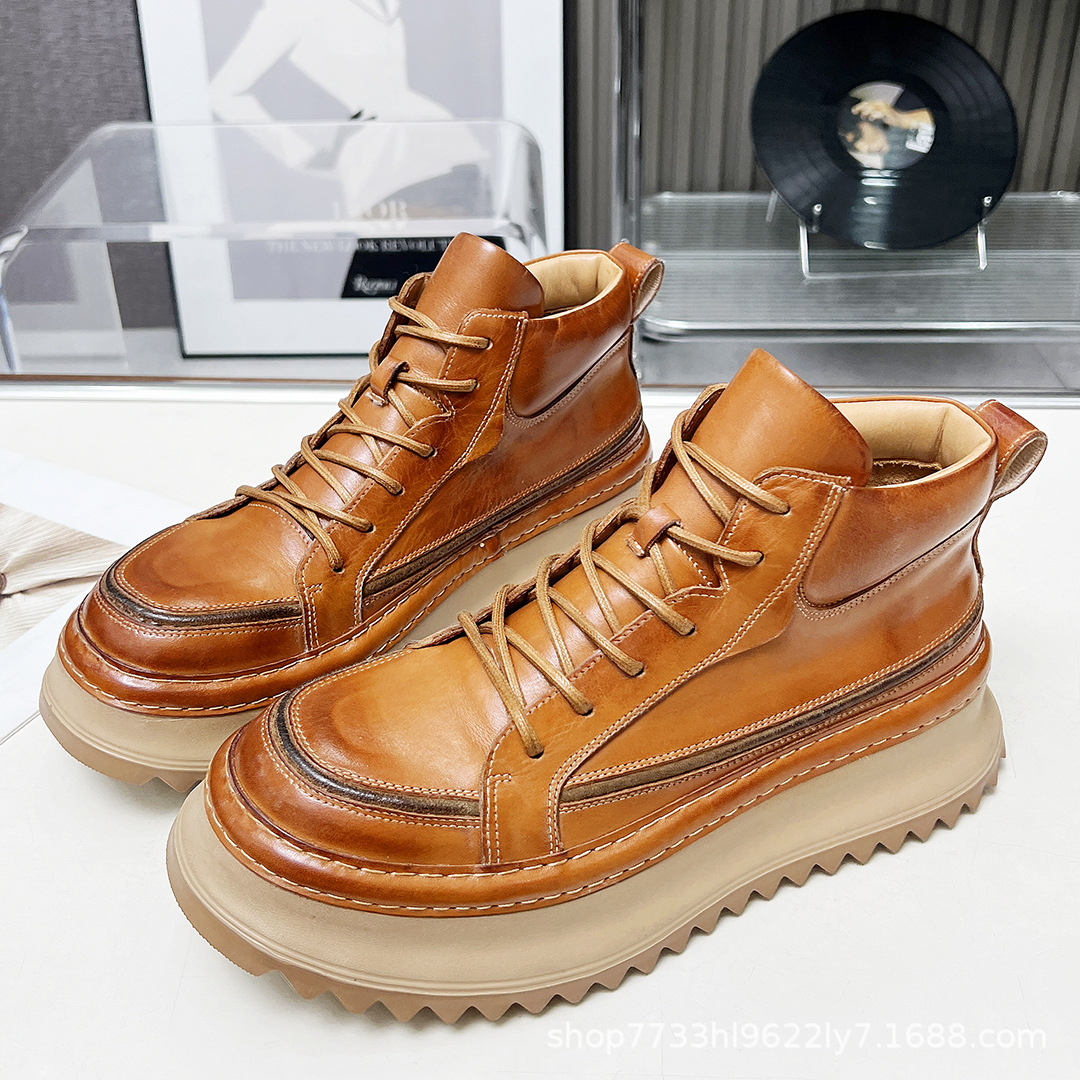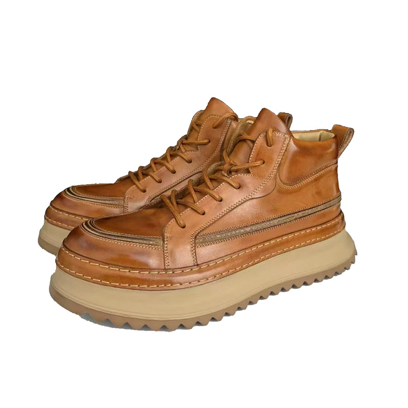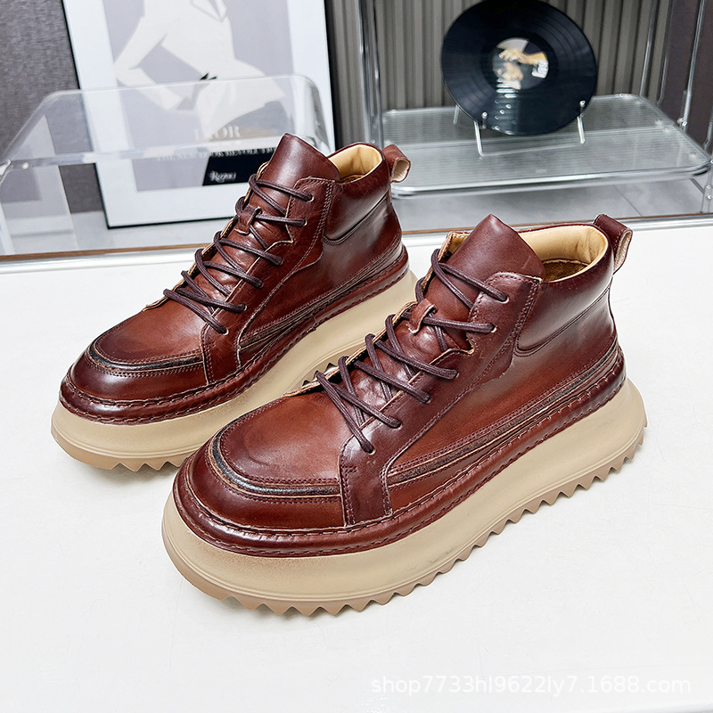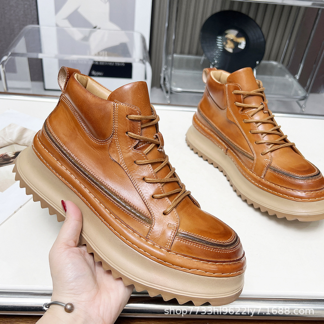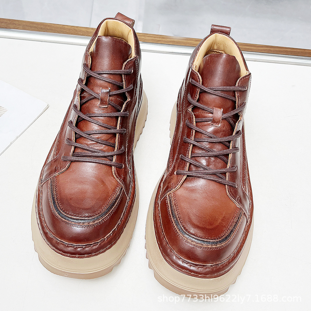 Главная страница > Винтажные мужские ботинки ручной работы из состаренной кожи, повседневные, полностью кожаные, на толстой подошве, 2025, новинка из Гуанчжоу, мужская обувь из натуральной кожи