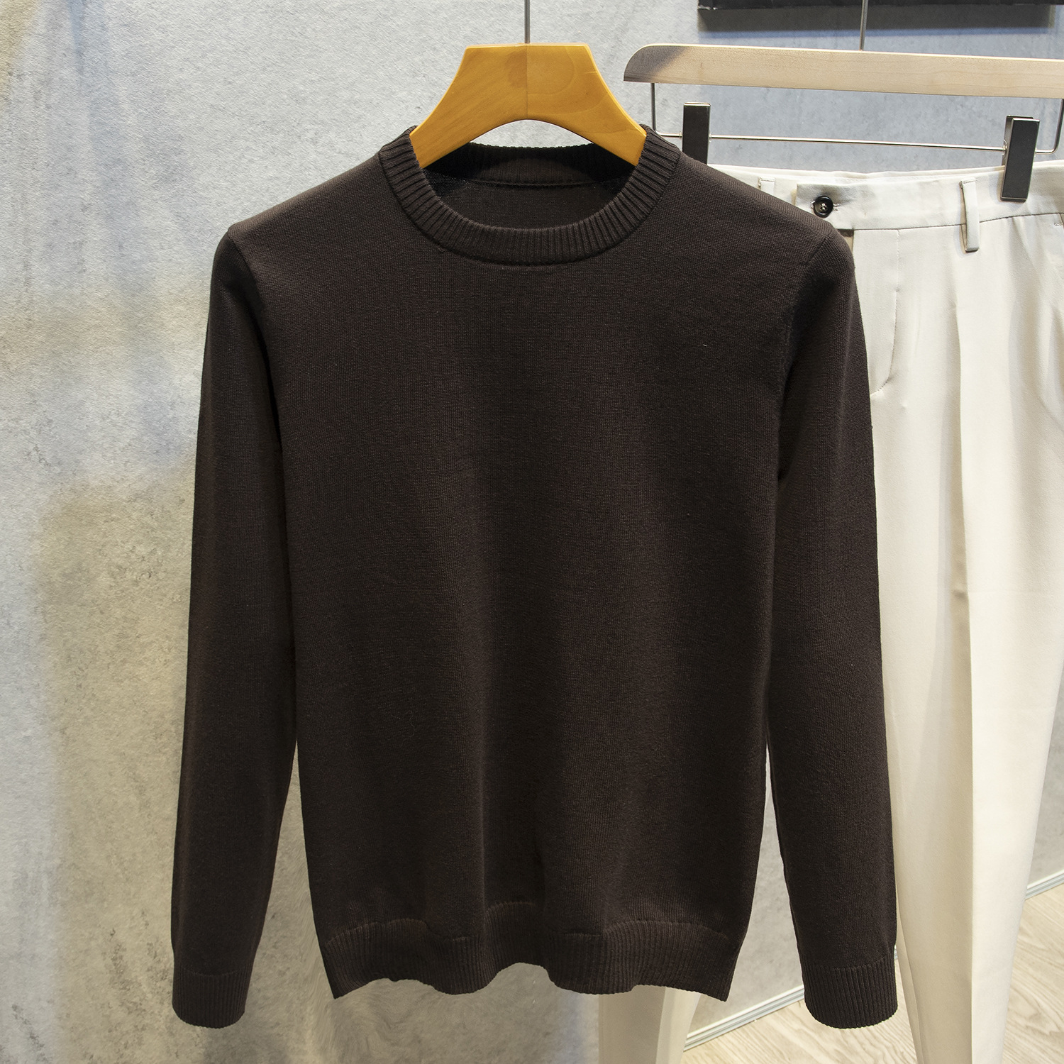 Главная страница > Осенне-зимняя вязаная футболка-свитер с круглым вырезом 2025 года для мужчин и женщин, теплая однотонная рубашка с длинными рукавами и облегающим кроем большого размера.