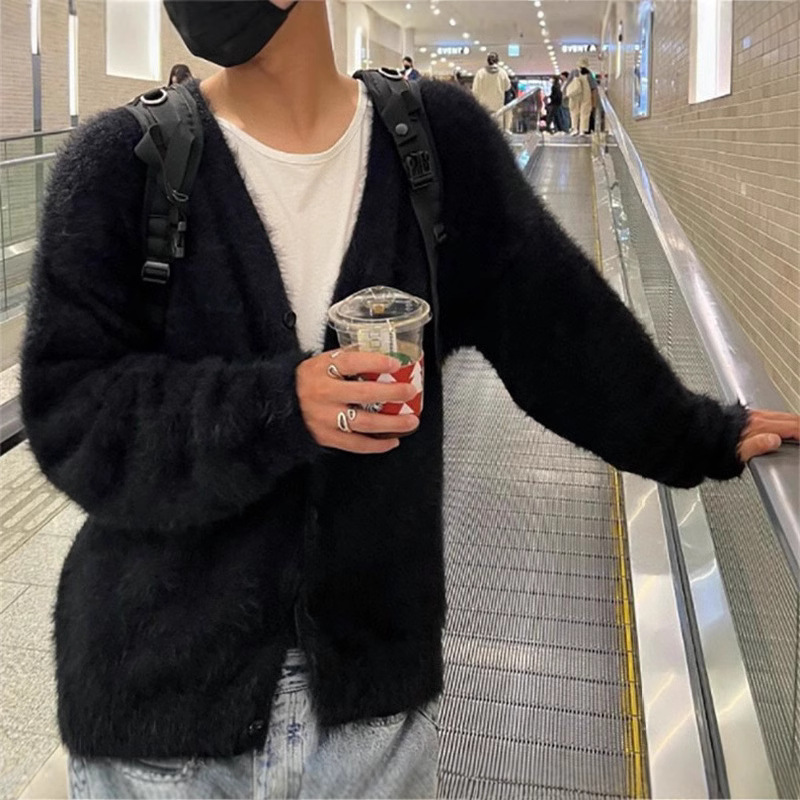 Главная страница > 24ss новый осенний элитный черный плюшевый смешанный повседневный свободный вязаный кардиган в ленивом стиле для мужчин и женщин