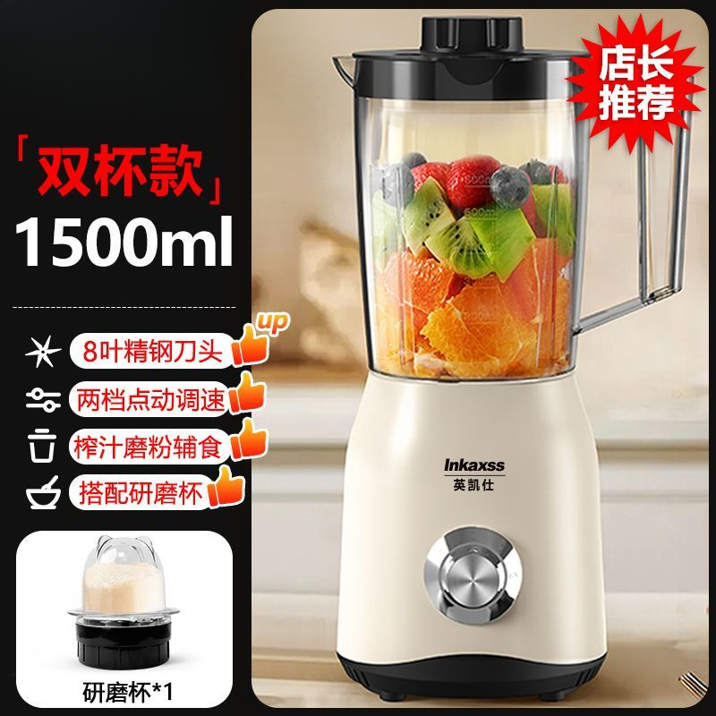 Модель большой емкости 1,5 л + 8-лезвийное лезвие из нержавеющей стали + двухскоростная регулировка скорости.