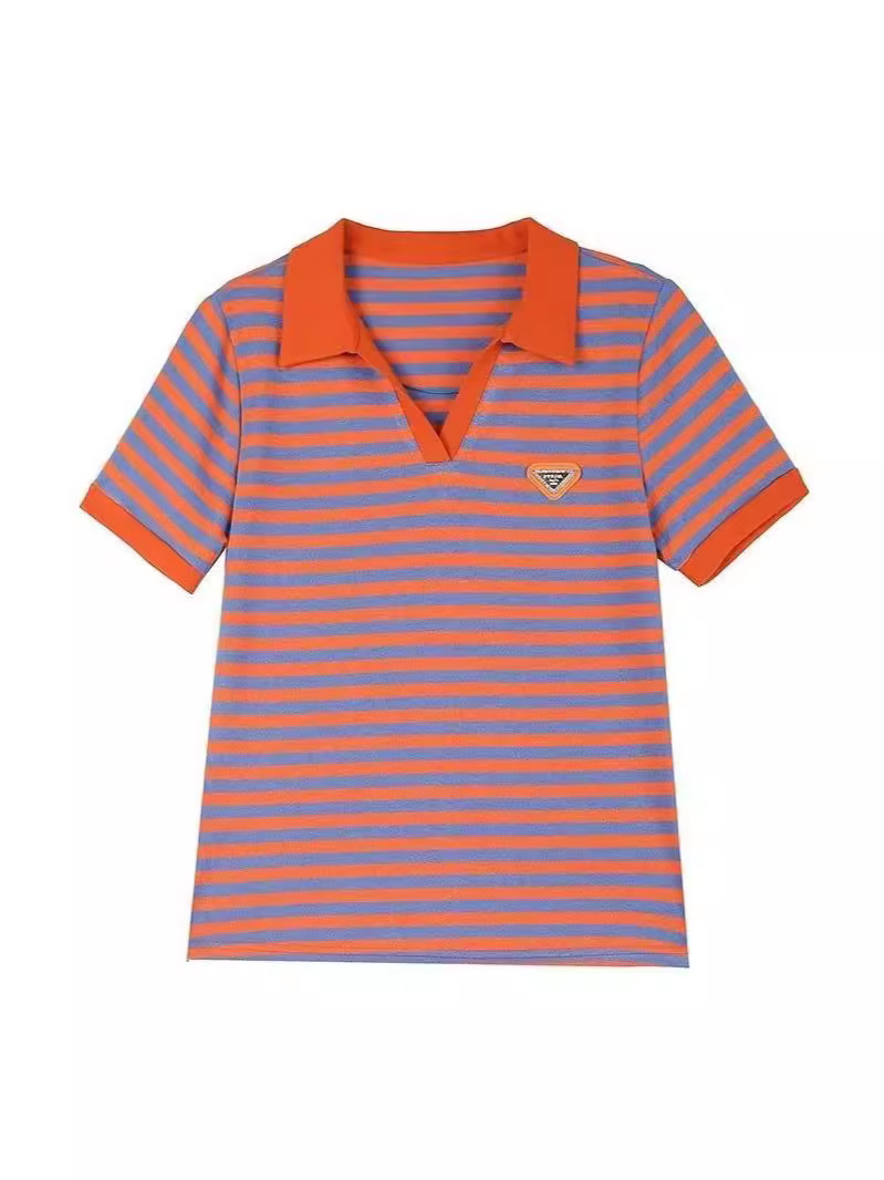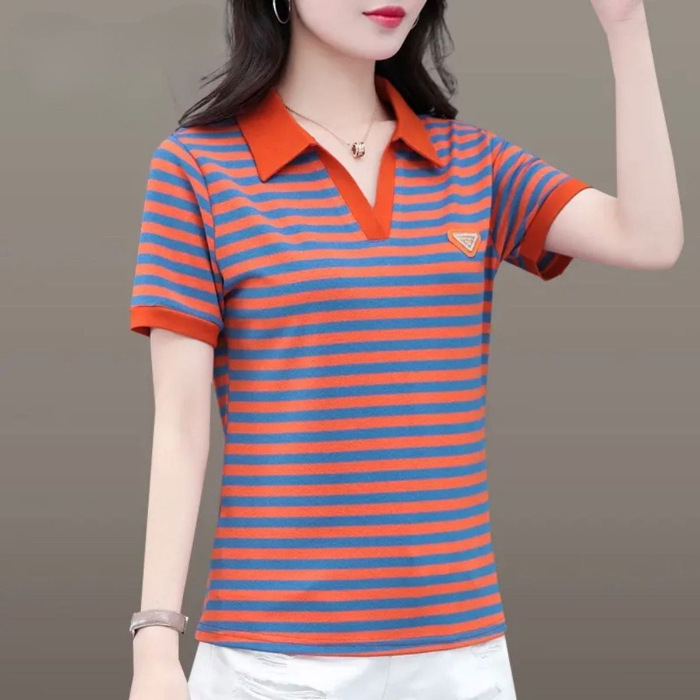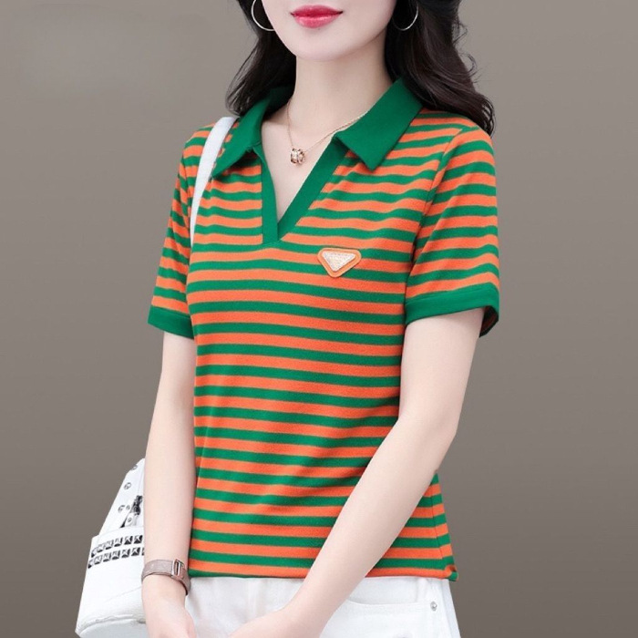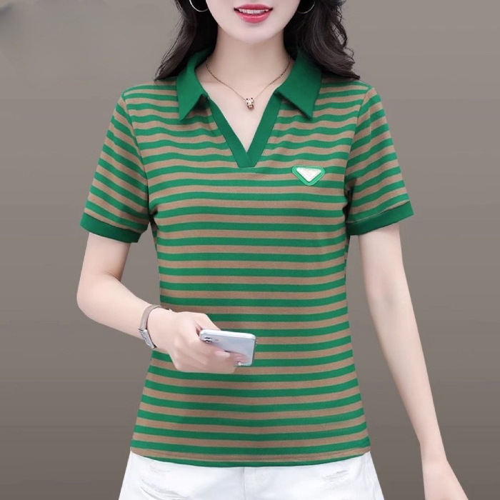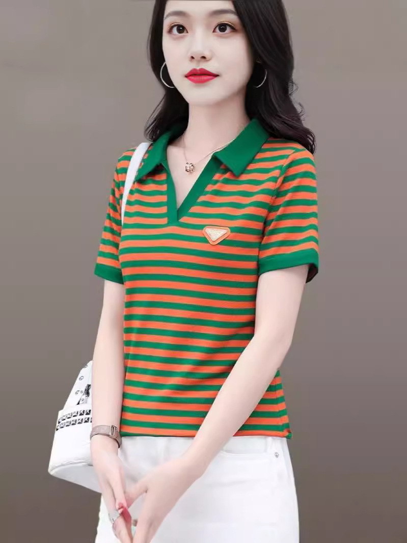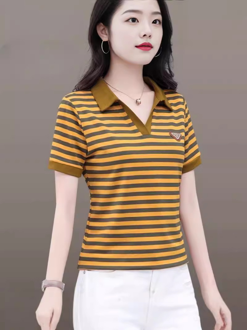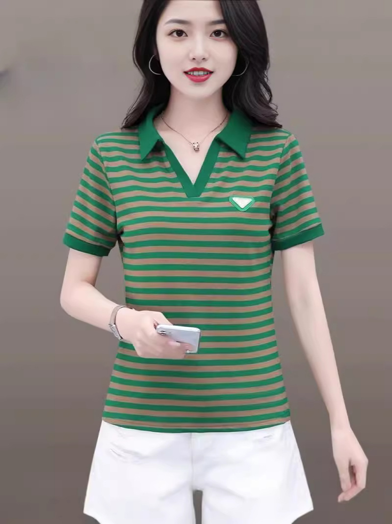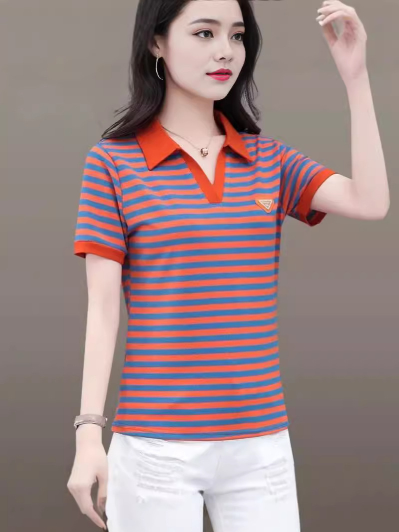 Главная страница > Мама в полоску футболка женская с короткими рукавами летняя мода новая рубашка дикая выемка POLO воротник вышивка топ оптом