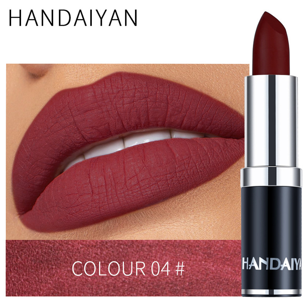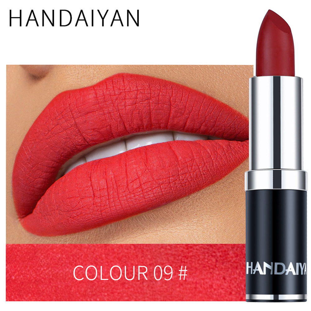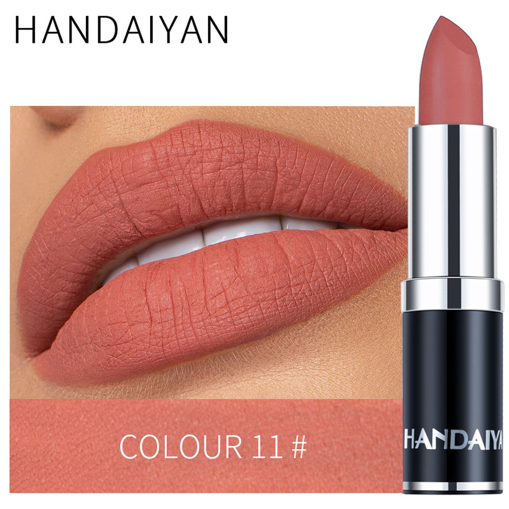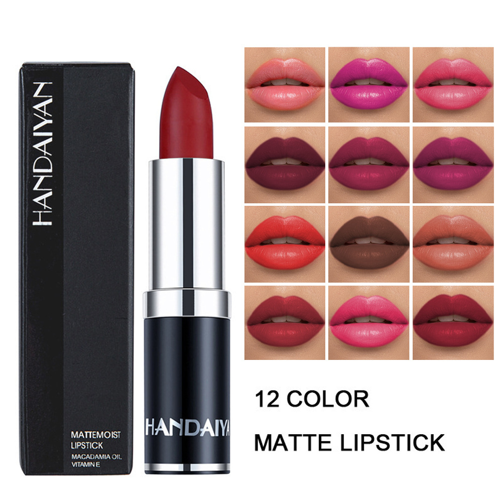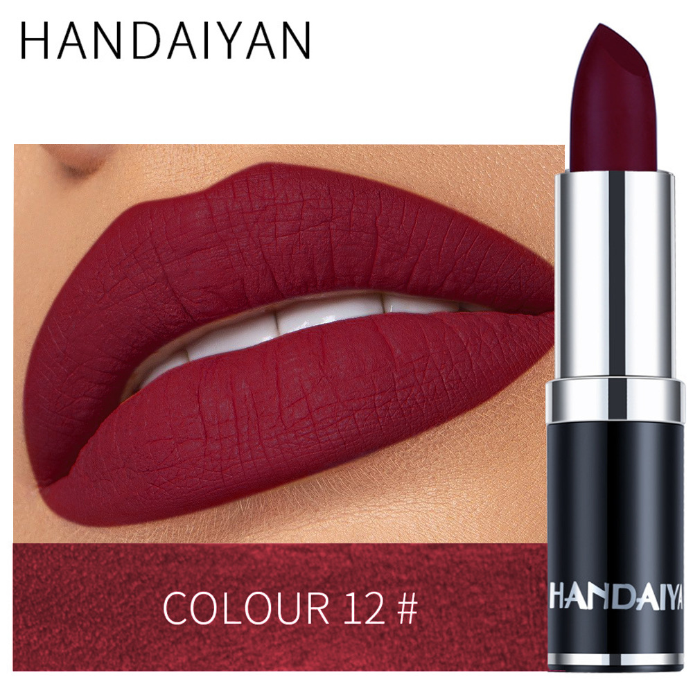 Матовая губная помада Handaiyan, 12 цветов, черная упаковка, стойкая, не оставляет следов на чашке, не выцветает.